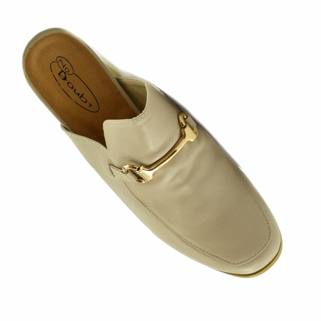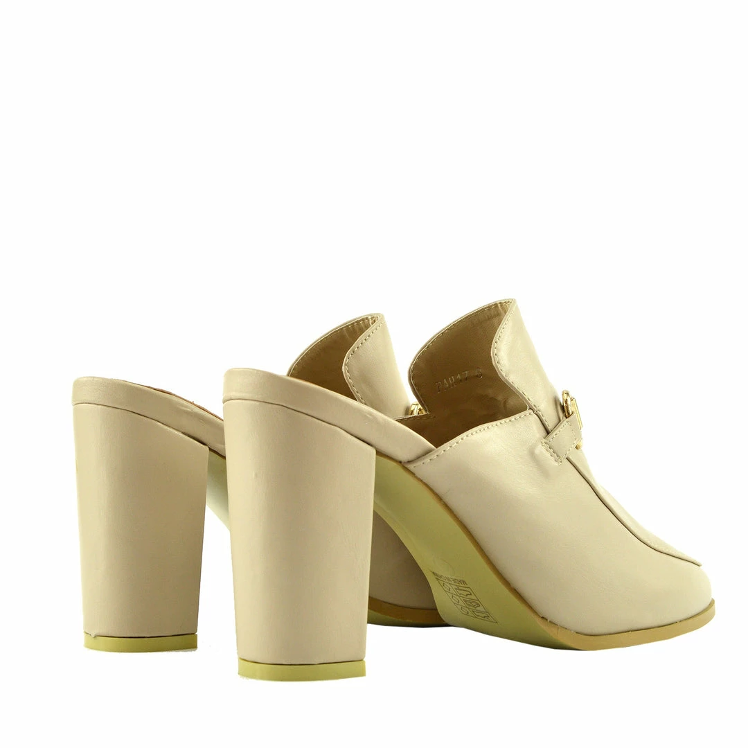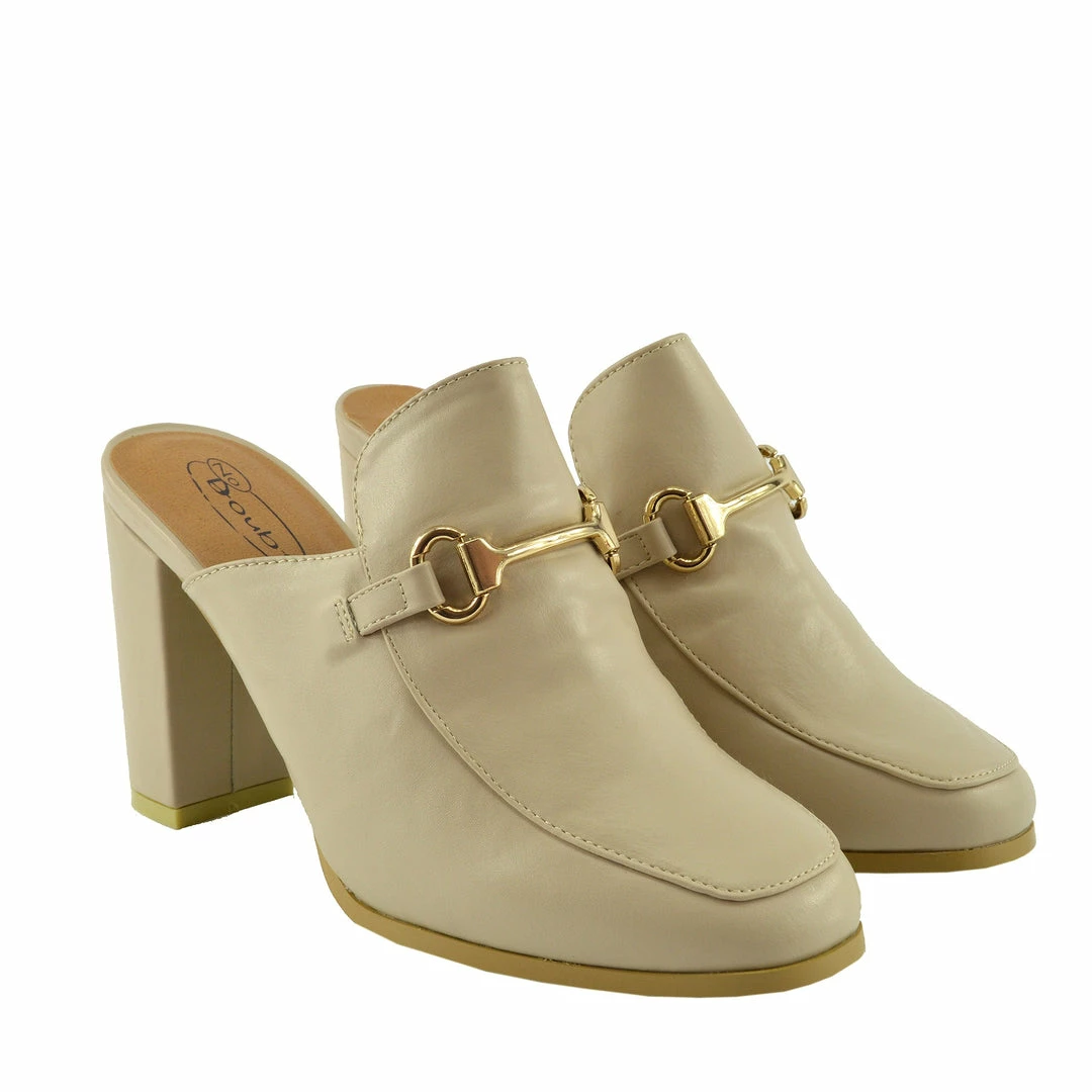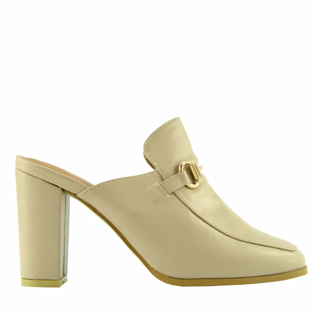These preppy mules are a great versatile option from brunch to nights out. Comfortable block heel and slip on style with a gold bar detail on the front.