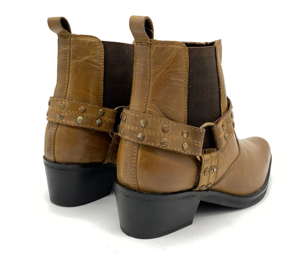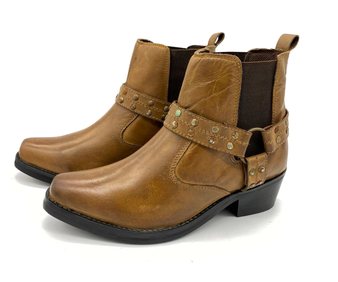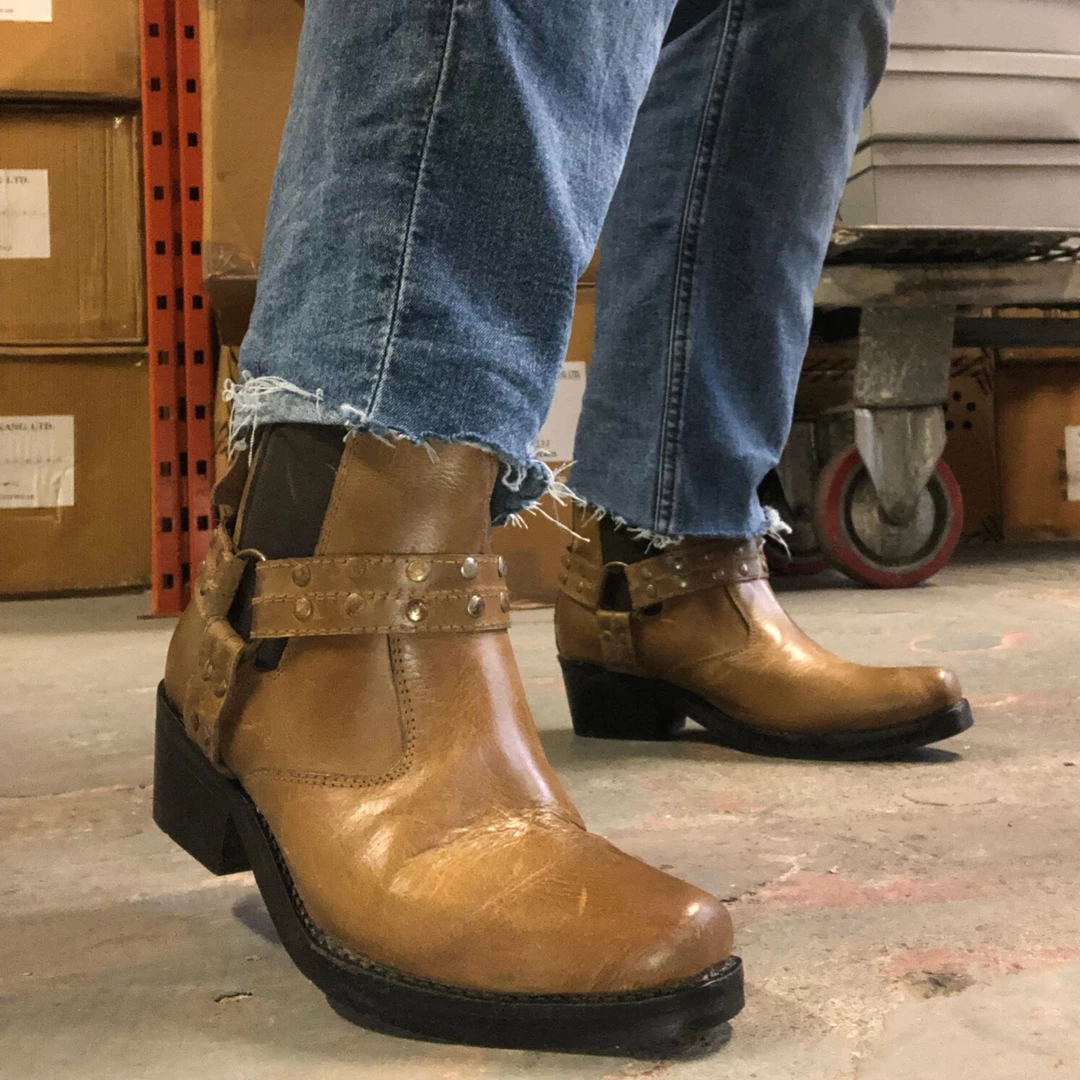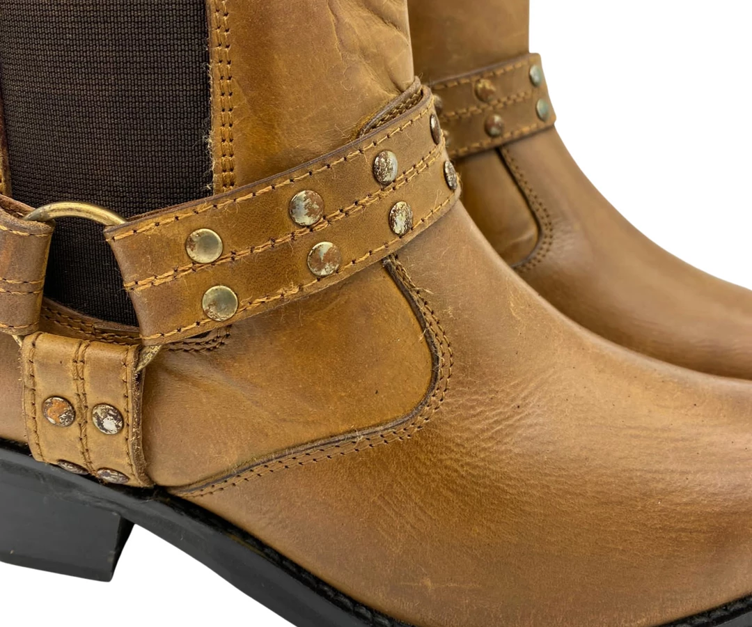The wide strap harness design with contrast worn vintage effect stud detailing is a unique design exclusively designed and made for us – you wont find these boots anywhere else. Choose from every day black or vintage effect Brown. Look after your boots with a polish or wax before wear to make sure they look great for longer. All our items are brand new and come packaged in our branded box making them a great gift.