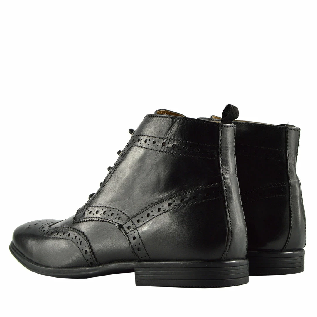 We love the Baker Black Leather boots. They are a wardrobe essential to update any ones style. Available here in a lace up Chelsea Boot with Classic Brogue stitch work giving a retro edge whilst the colours available black or brown can be teamed with lightweight summer trousers, chino’s, suit trousers or even jeans.