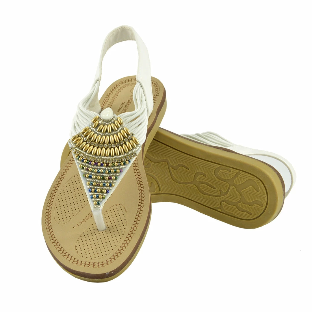 Women’s Slip on Beaded Boho Summer Flat Comfort Sandals UK3-UK8