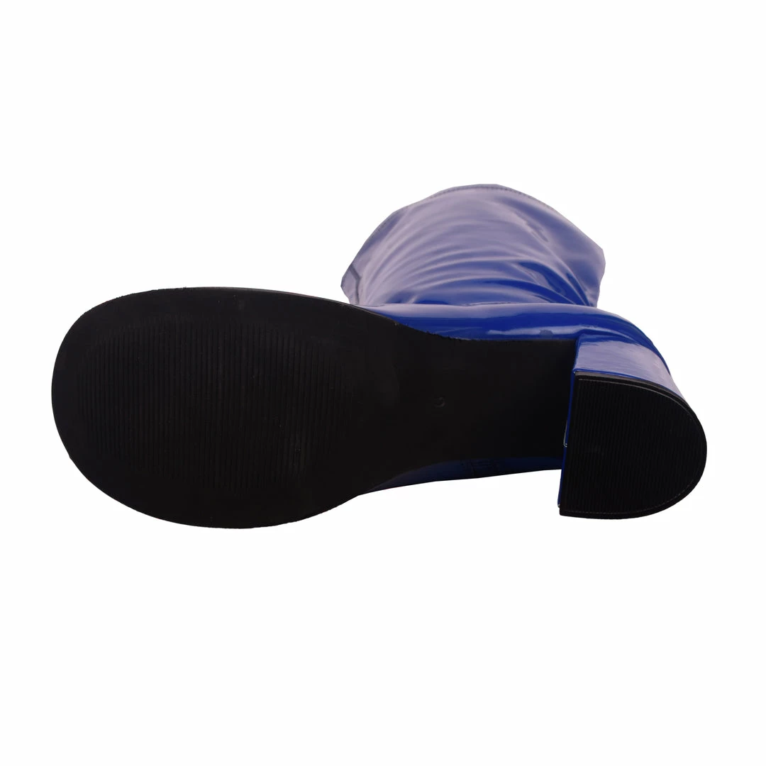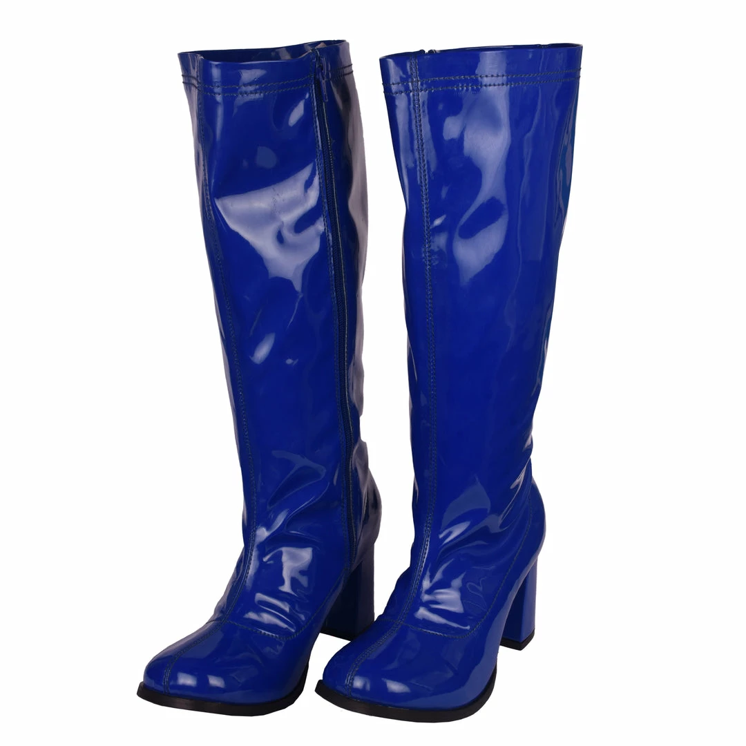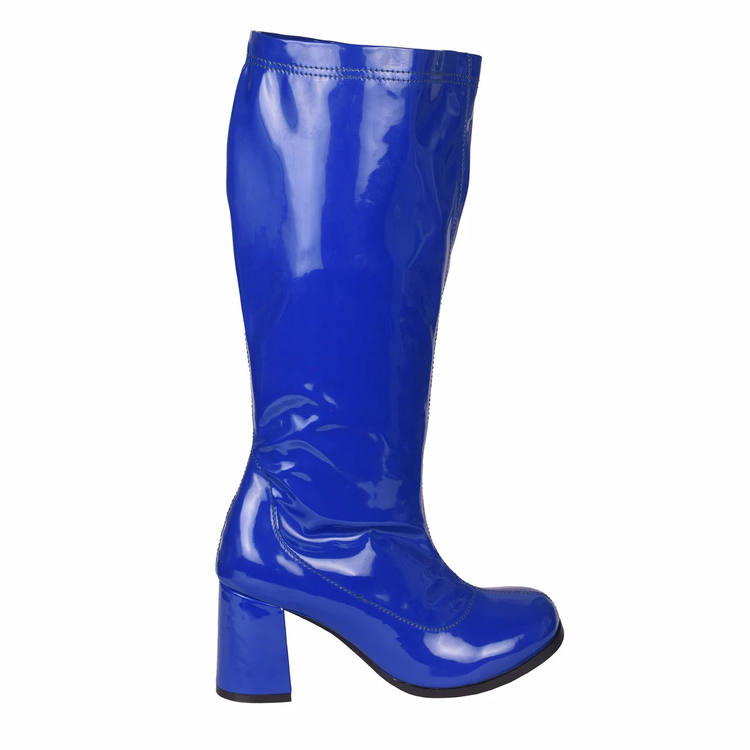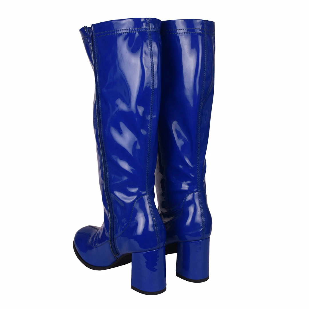 These Betty Block Heel Go Go Boots are ideal for any B-Movie Fanatic. From Burlesque to a night out on the town, fancy dress or just dressing up. Team these super shiny and bold blue boots with mini skirts and dresses for the ultimate swinging 60’s look that’s certain to turn heads!