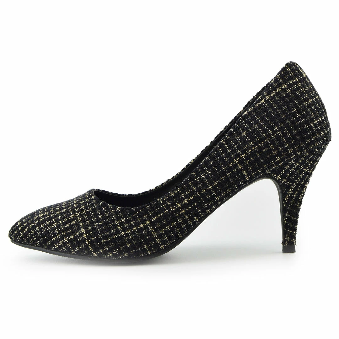 Exude office-chic with these cross-hatch patterned kitten heels. Designed in a court shoe style, these heels have been made for the professional woman.