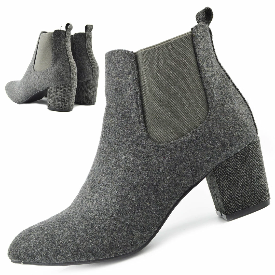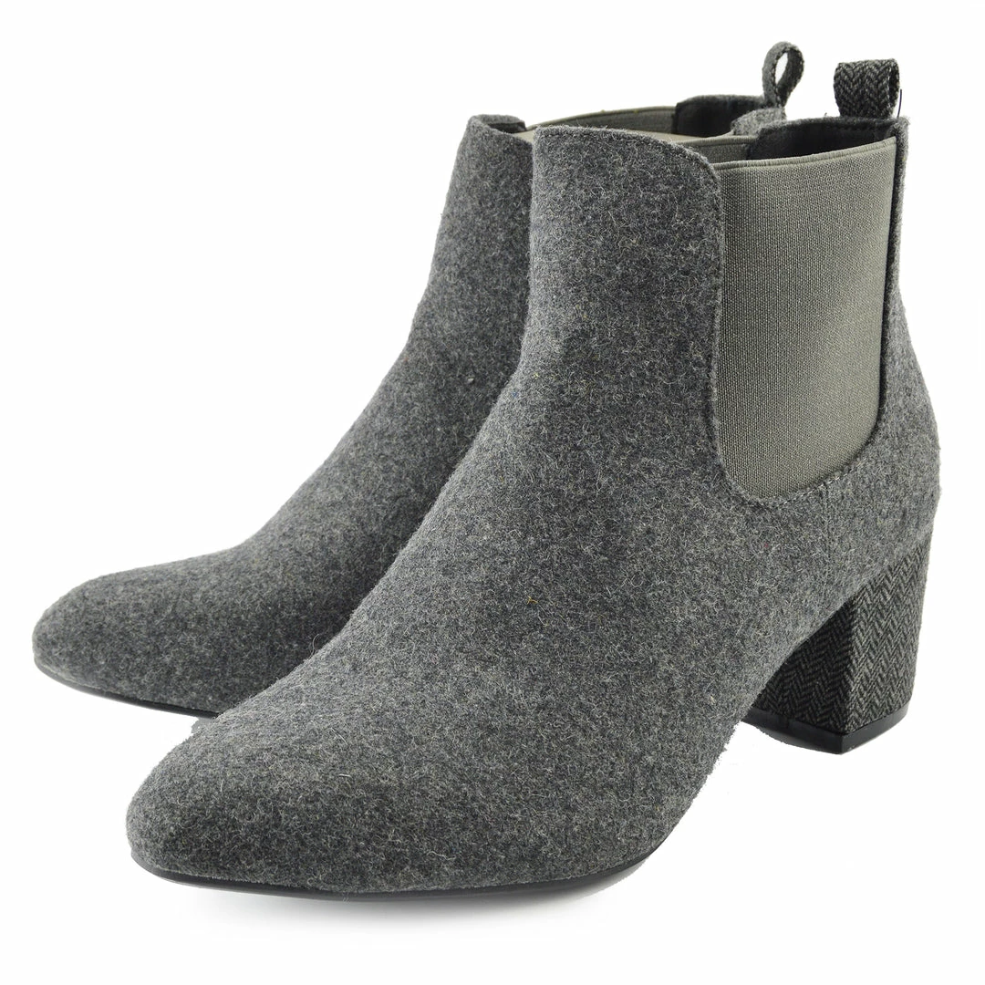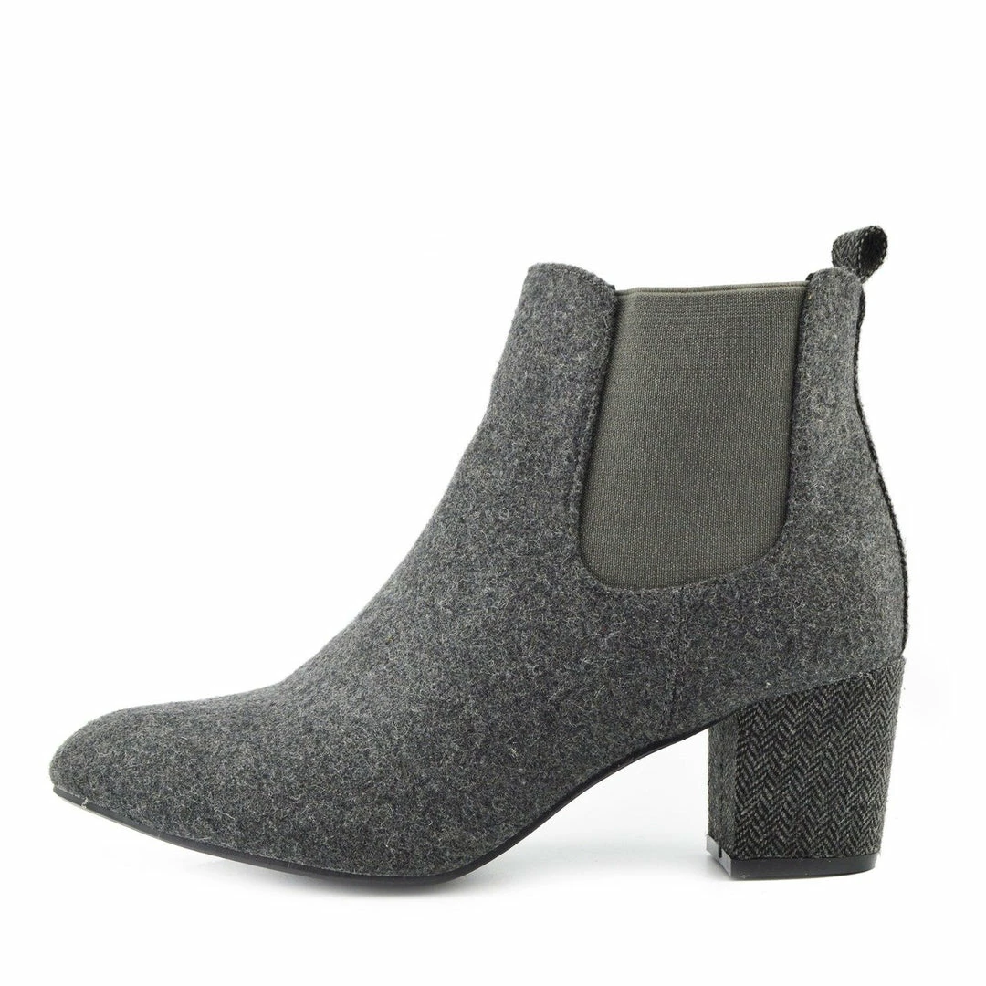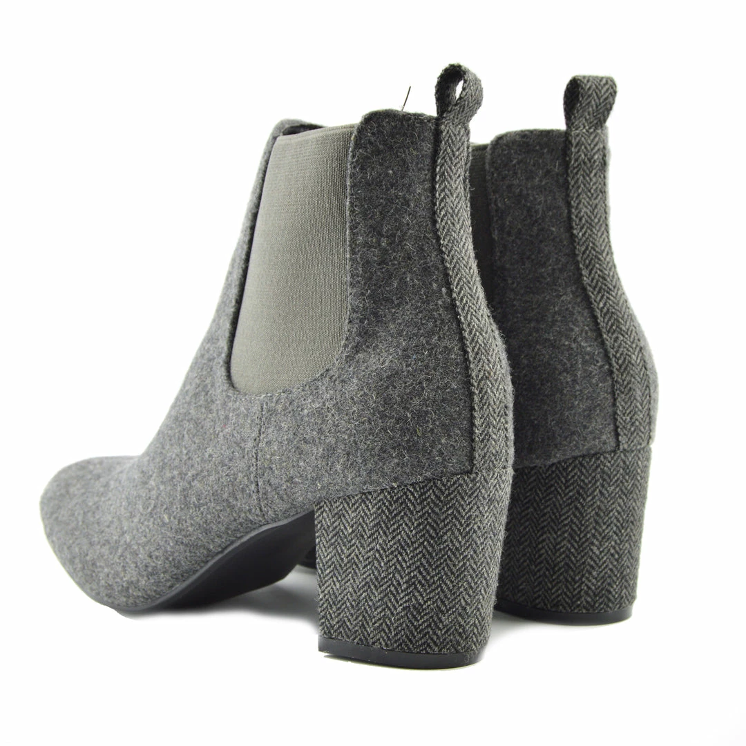 Inspired by these trends, these Chelsea boots feature all over soft grey textile. The high block heel is covered in a contrasting print in a similar palette with a sleek strip up the back. Carefully designed and made, these boots are the perfect way to add another dimension to your winter look. Pair with black stockings, a short flared skirt and top to match to show them off.