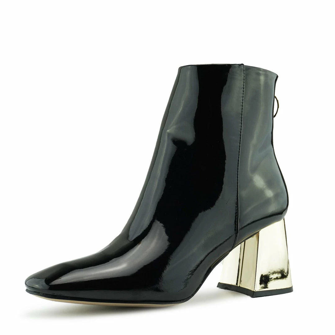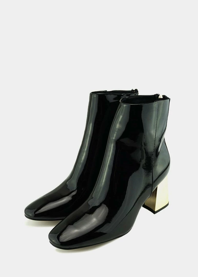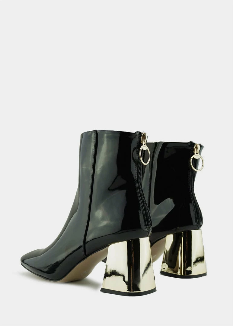 A Metallic Block Heel, that zips up at the back and gives you enough height for a spring in your step but won’t stop you dancing all night long.
