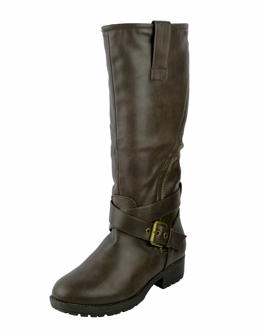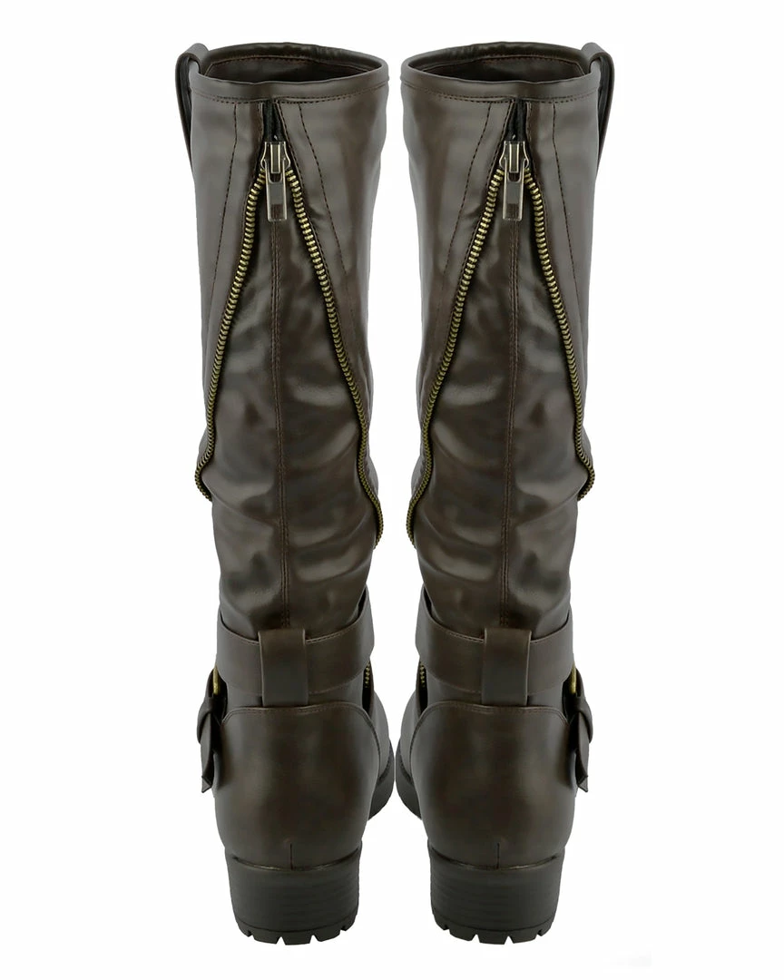 Long boots don’t just make for great fashion, they are practical during the colder times of the year. Taking the best of military and riding fashion, these faux leather boots are a win-win.