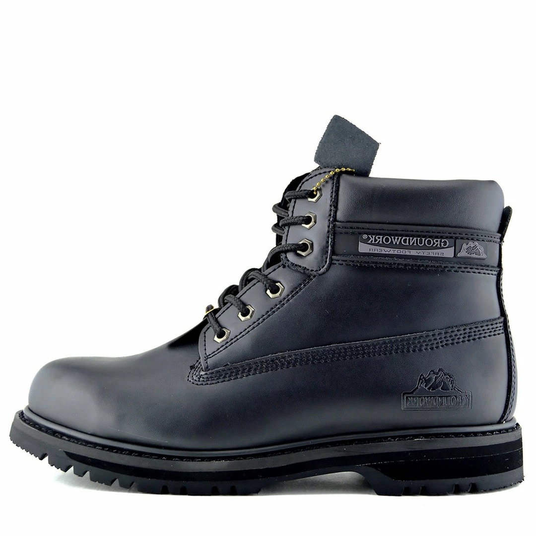 These Groundwork safety boots are made in a classic boot style. Black on black, they are perfect for those who work in a dangerous workplace but also want to look professional. Made with lace, these lace up boots provide complete cushioning for your feet and ankles. This includes a steel cap to protect your toes. These boots elevate safety footwear with their modern style and edgy feel. Our range of sturdy, reliable and comfortable safety footwear are EC directive compliant and have certificates of testing enclosed(view here). Please check the certificate to ensure you have the correct level of protection before use.