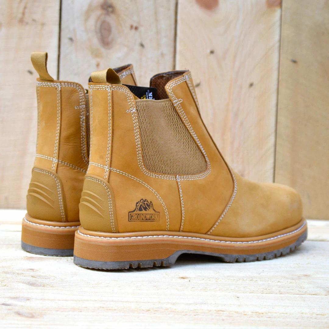 These pull on menÕs safety shoes have been designed with your wellbeing in mind. Easily slipped on, these high cut boots have a steel cap toe for protection. Black, they have a smooth finish and strong, thick sole. These Groundwork Chelsea-style boots are a popular style for many professionals working in dangerous environments. Protect with your feet without compromising your style. Our range of sturdy, reliable and comfortable safety footwear are EC directive compliant and have certificates of testing enclosed(view here). Please check the certificate to ensure you have the correct level of protection before use.