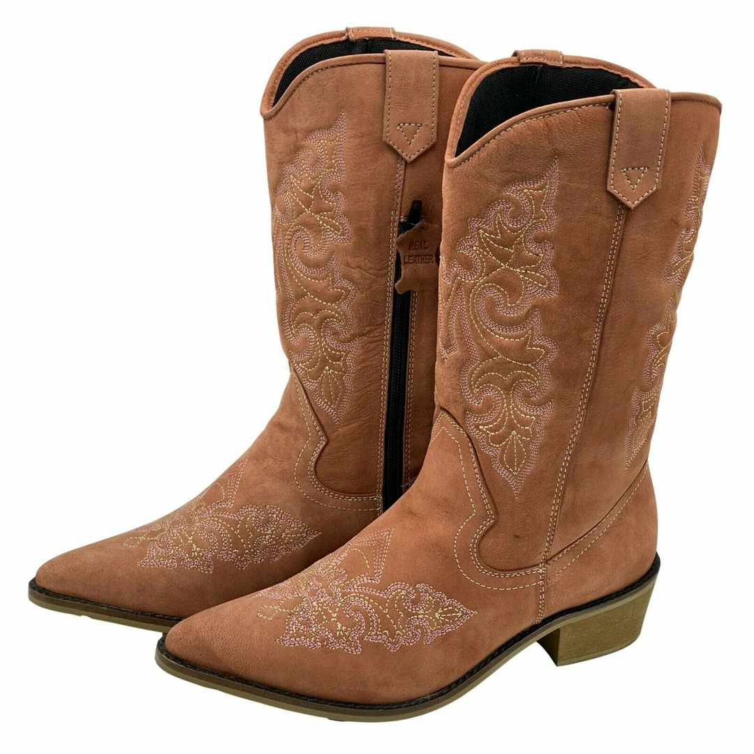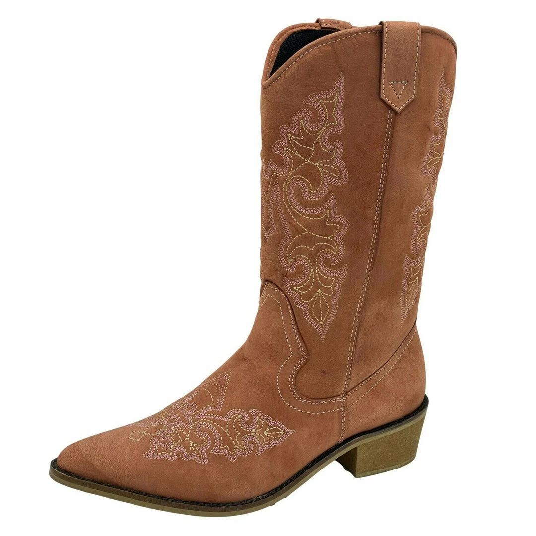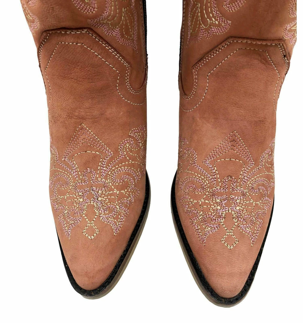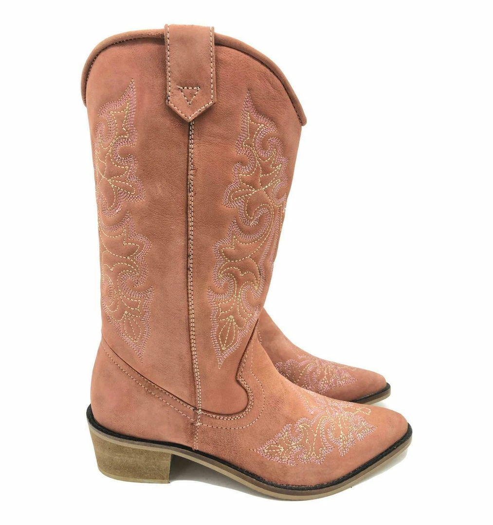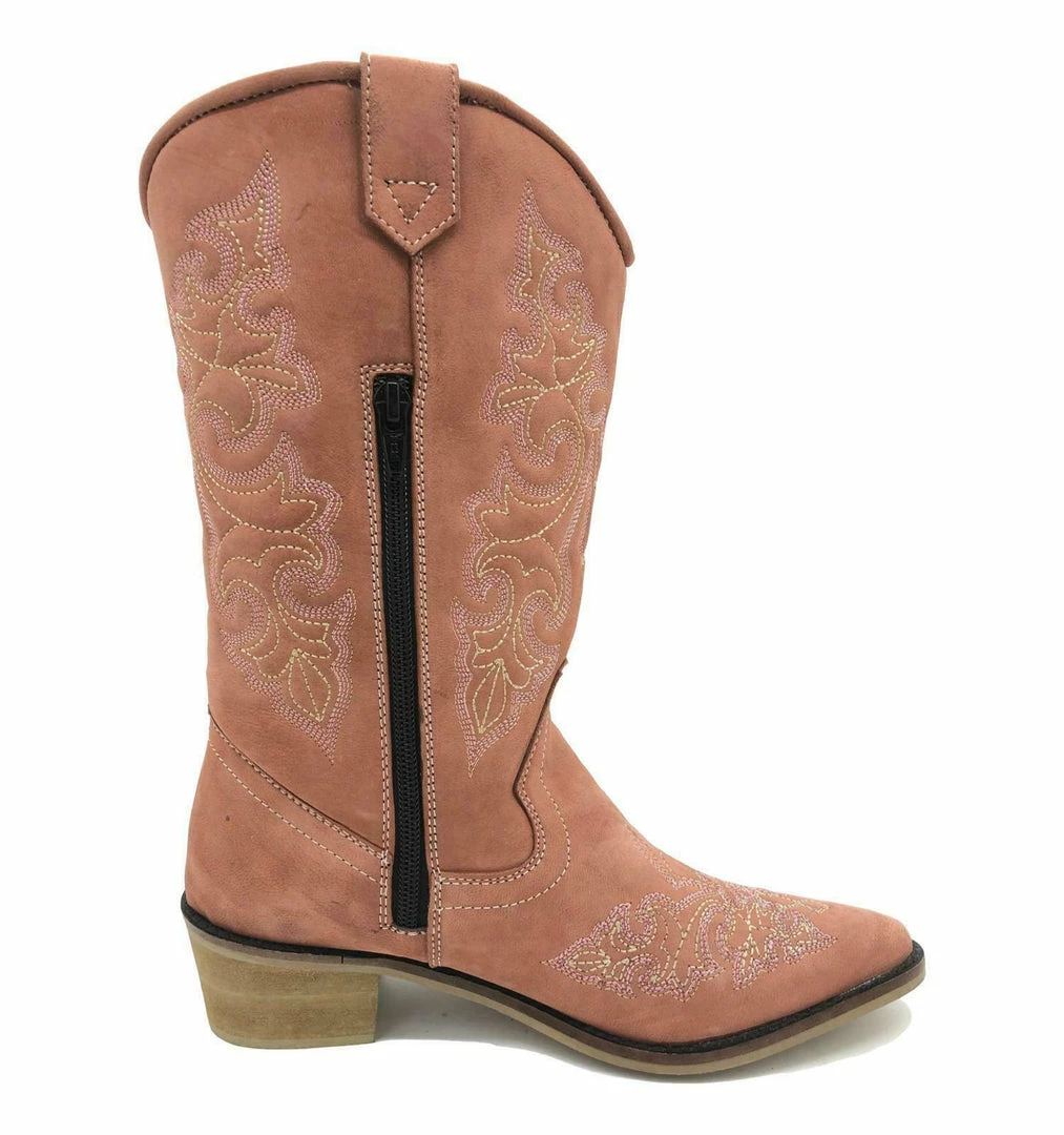Made from Genuine Nubuck Leather upper and fully lined, they are a buttery soft leather material with contrast pink and cream western style stitching.