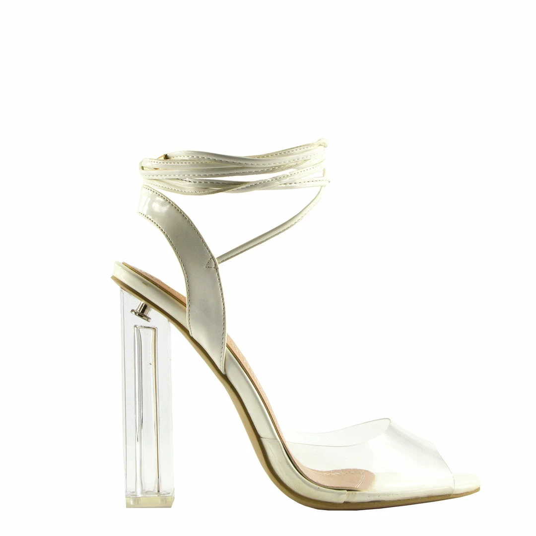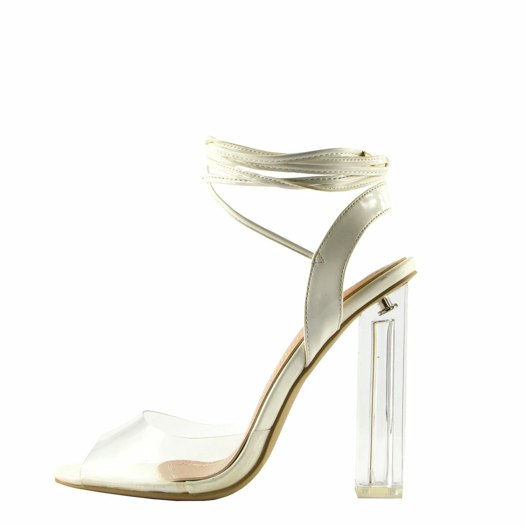 Ladies Womens Girls Perspex High Heels Clear Strap Long Lace Up Party Shoe Size
