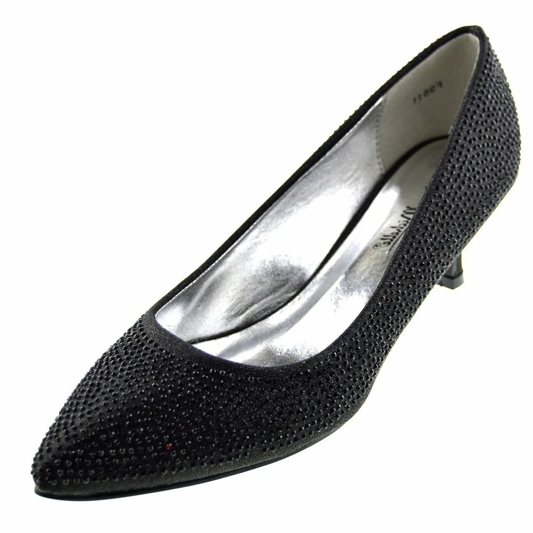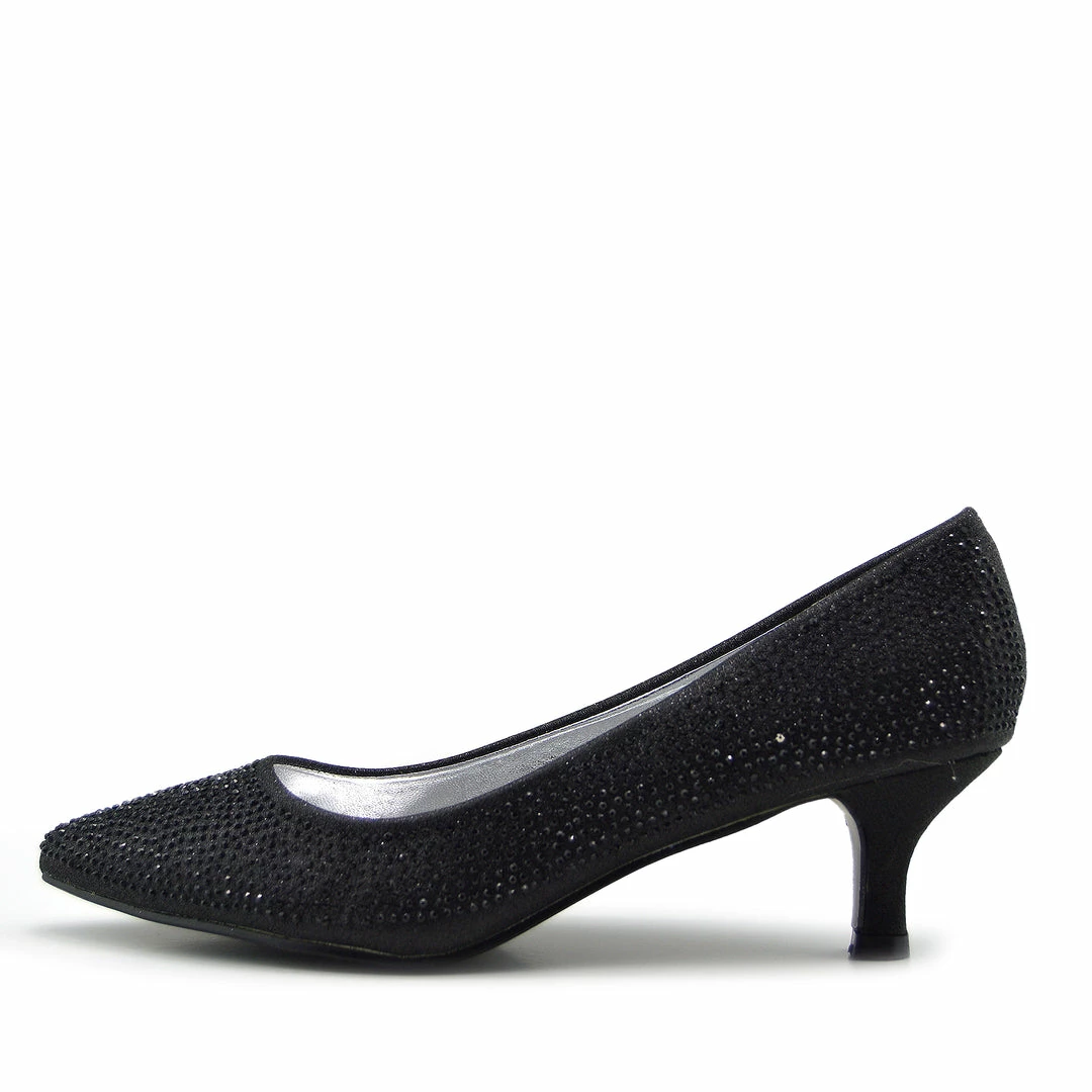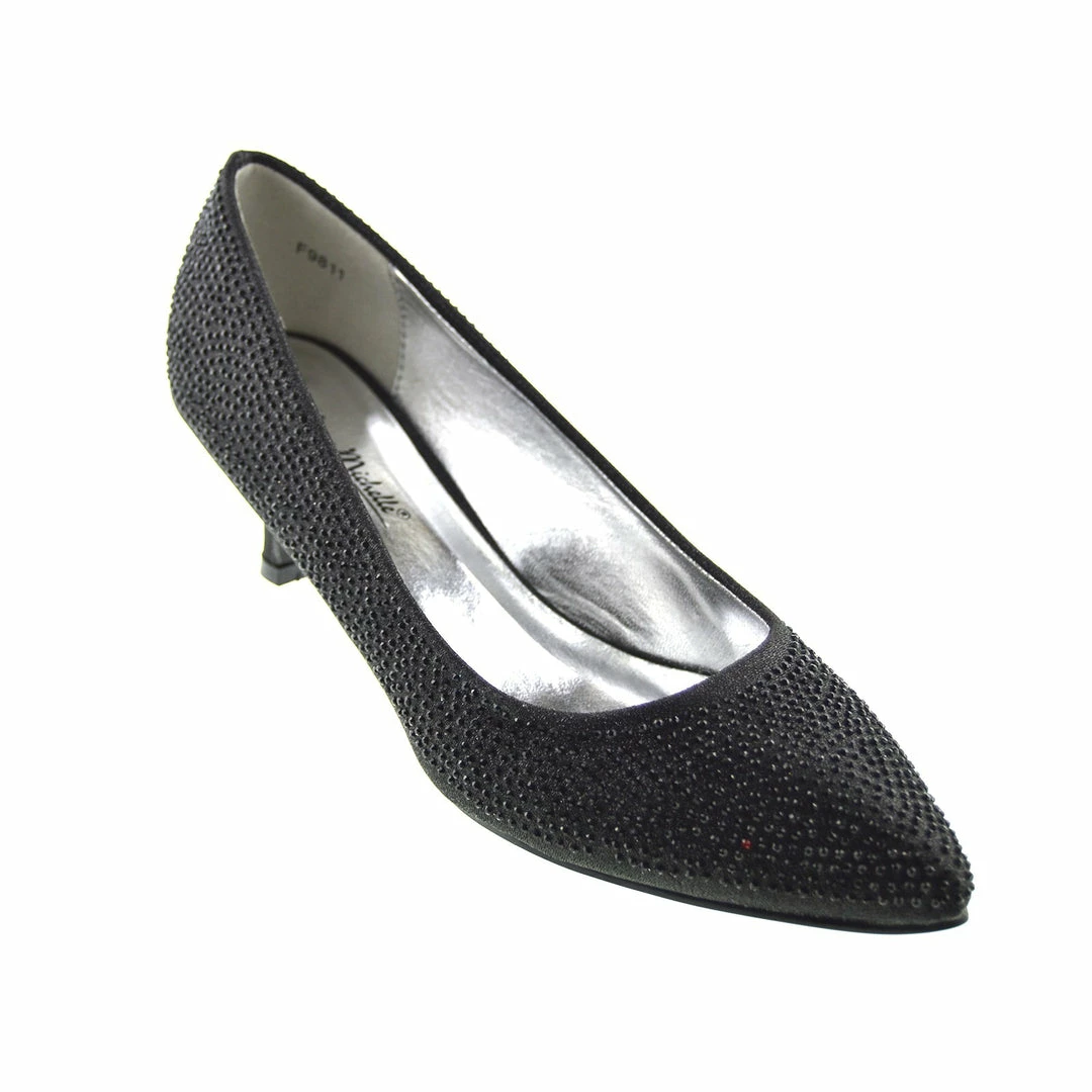 Women’s Bridal, Party, Prom Kitten Heel Diamante Glitter Court Shoes