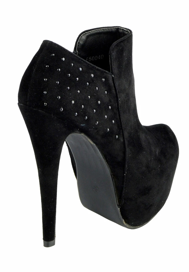 Ideal for a special party or night out, these platform boots have a unique shape and chic stiletto heel. With a zip up the side, easily take these on and off. Featuring studs on the back half of the shoe, make your entrance in these one-of-a-kind platform stilettos.
