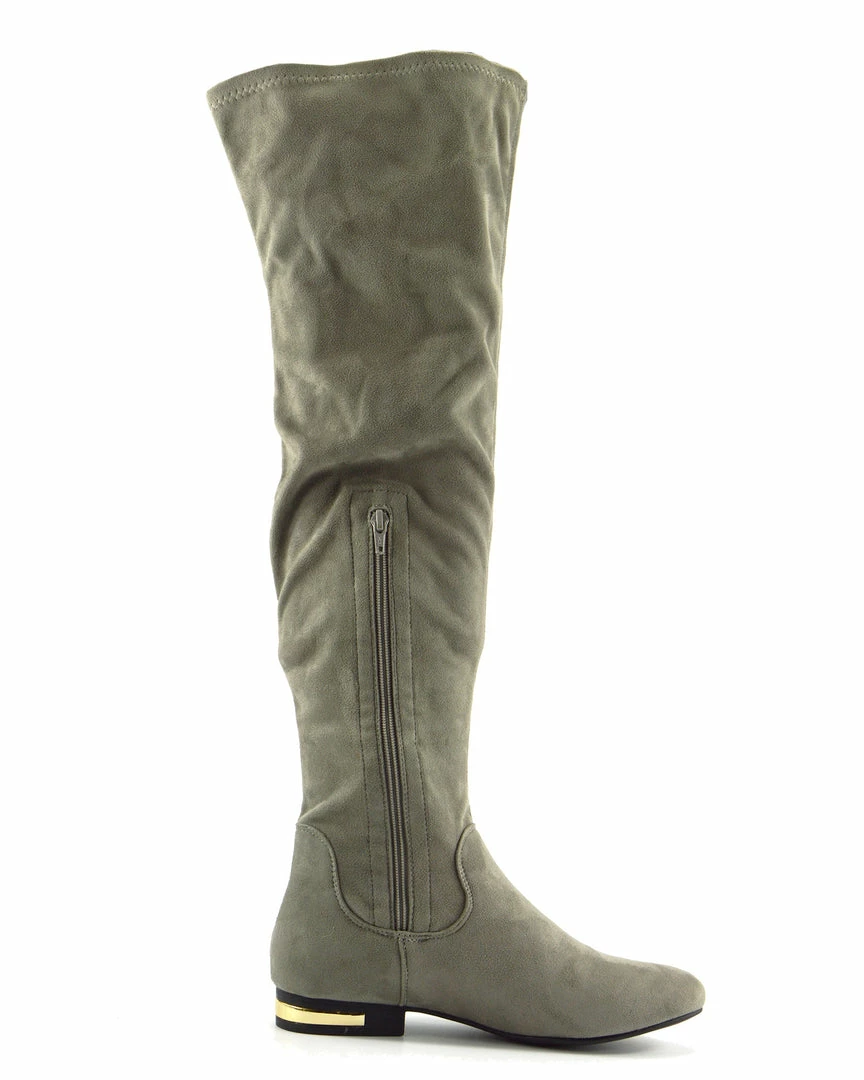 These over the knee boots aren’t quite the average casual boots you may have seen. Despite their flat sole, the low heel features a gold trim, giving them a luxe look. With a side zip, you won’t struggle to wear these but will easily grab and go, pairing them with leather-like pants or skinny jeans.