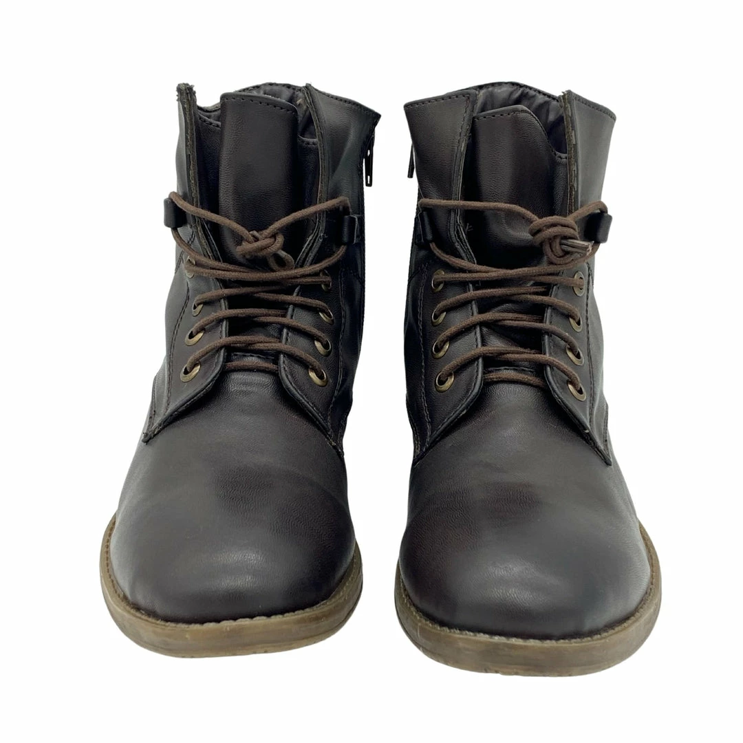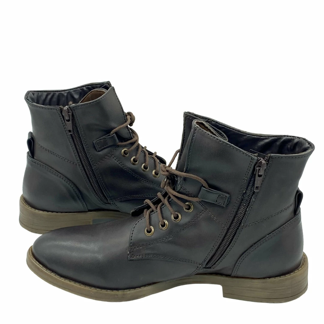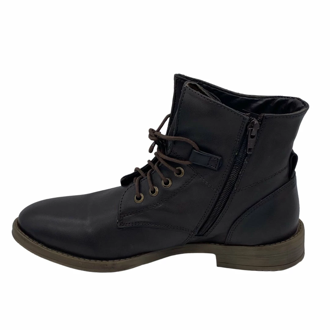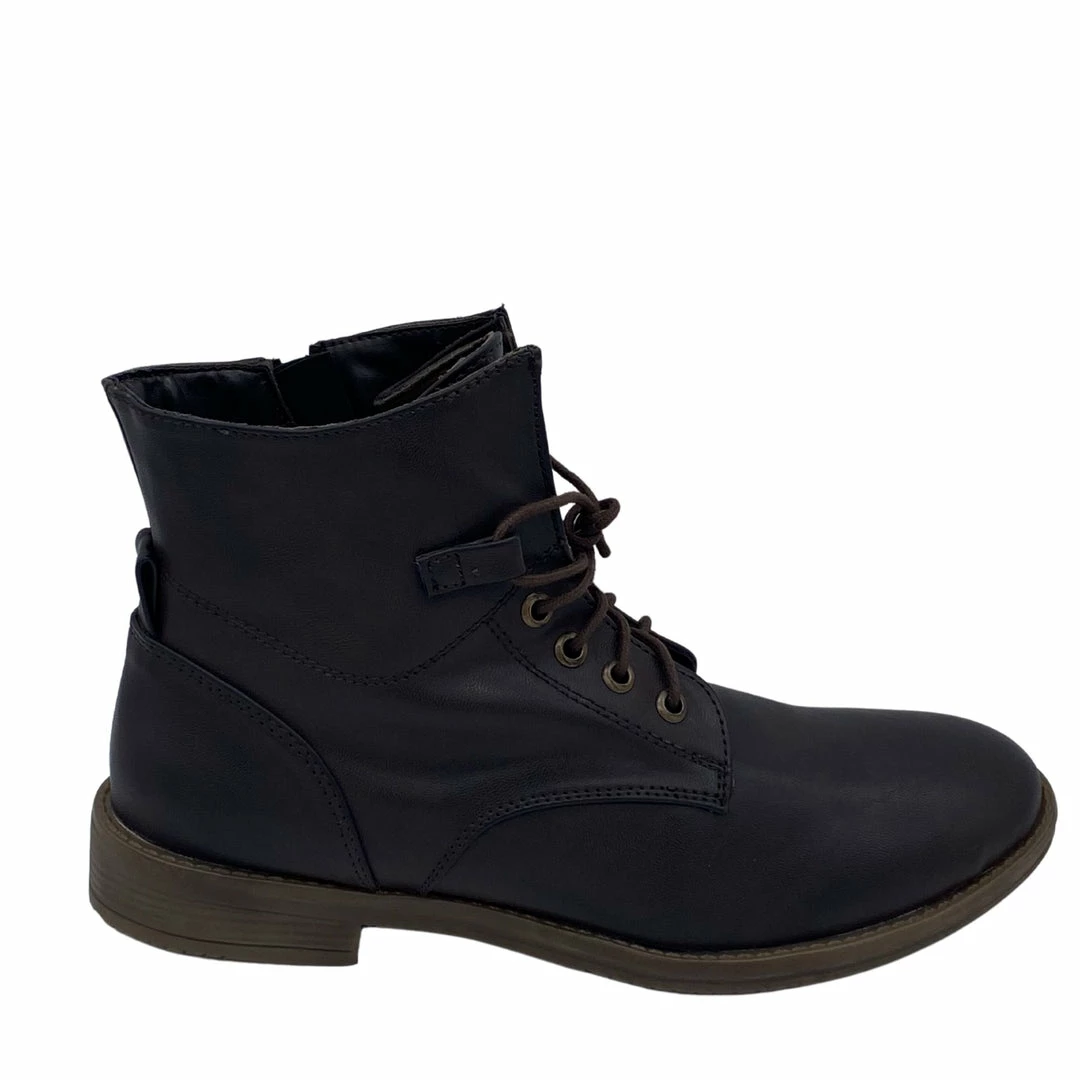 With a flat sole, these lace up ankle boots are a great casual go to boot for everyday wear. Great with jeans, shorts, or skirts and dresses, you’ll have unlimited ways to style these boots. The side zip adds to the detail across the shoes and makes them easy to pull on quickly. Available in a range of shades, you won’t need to find an excuse to wear these combat boots.