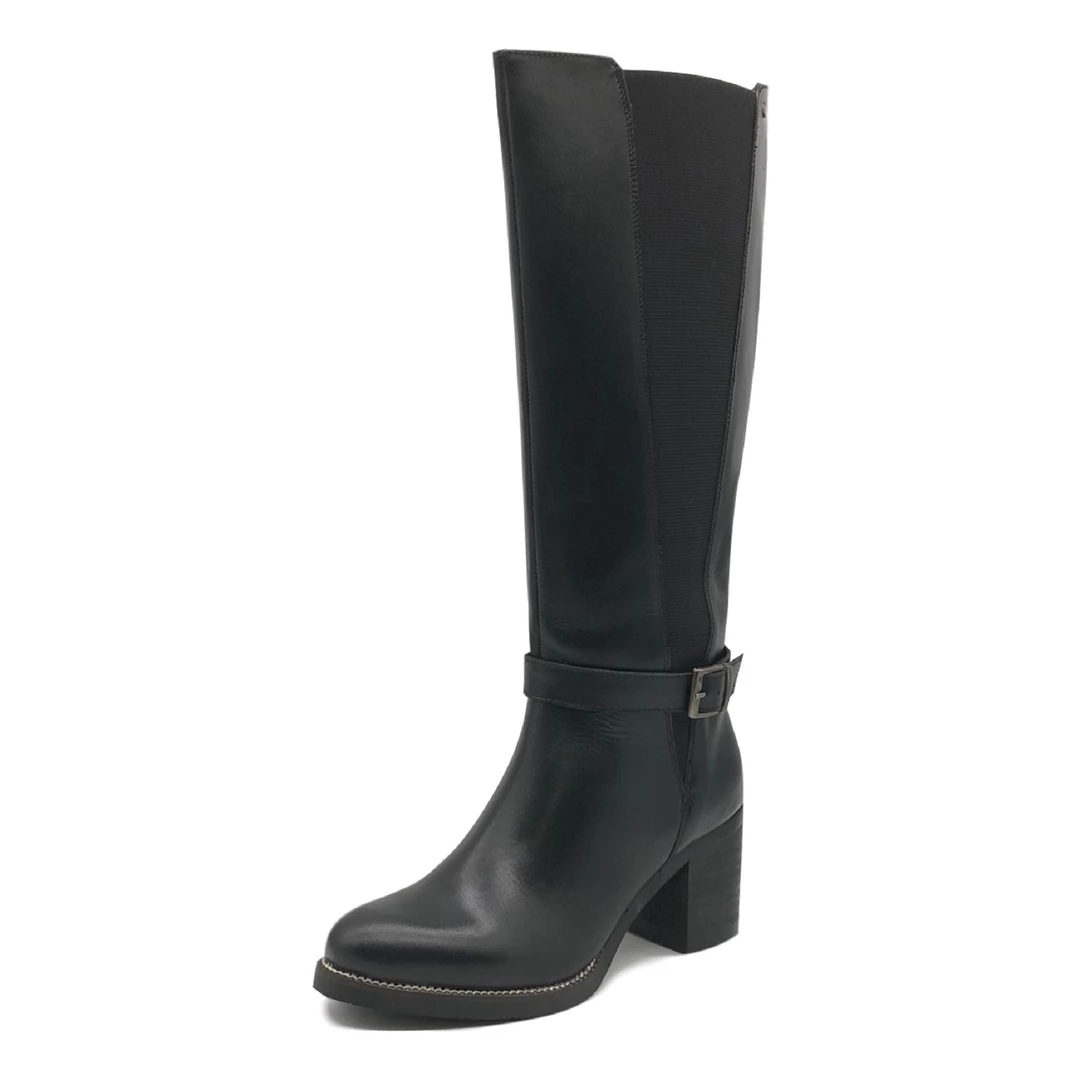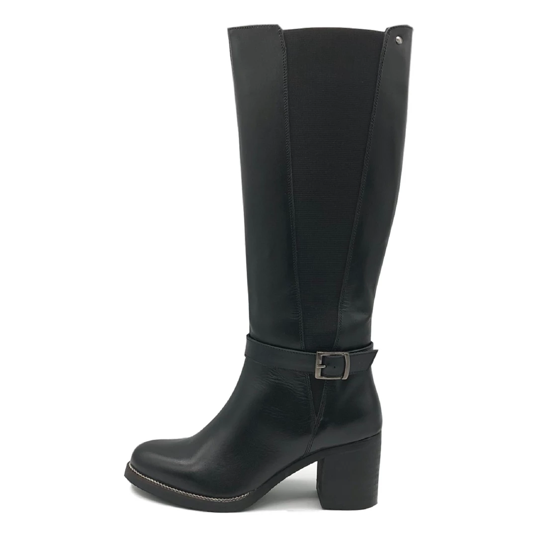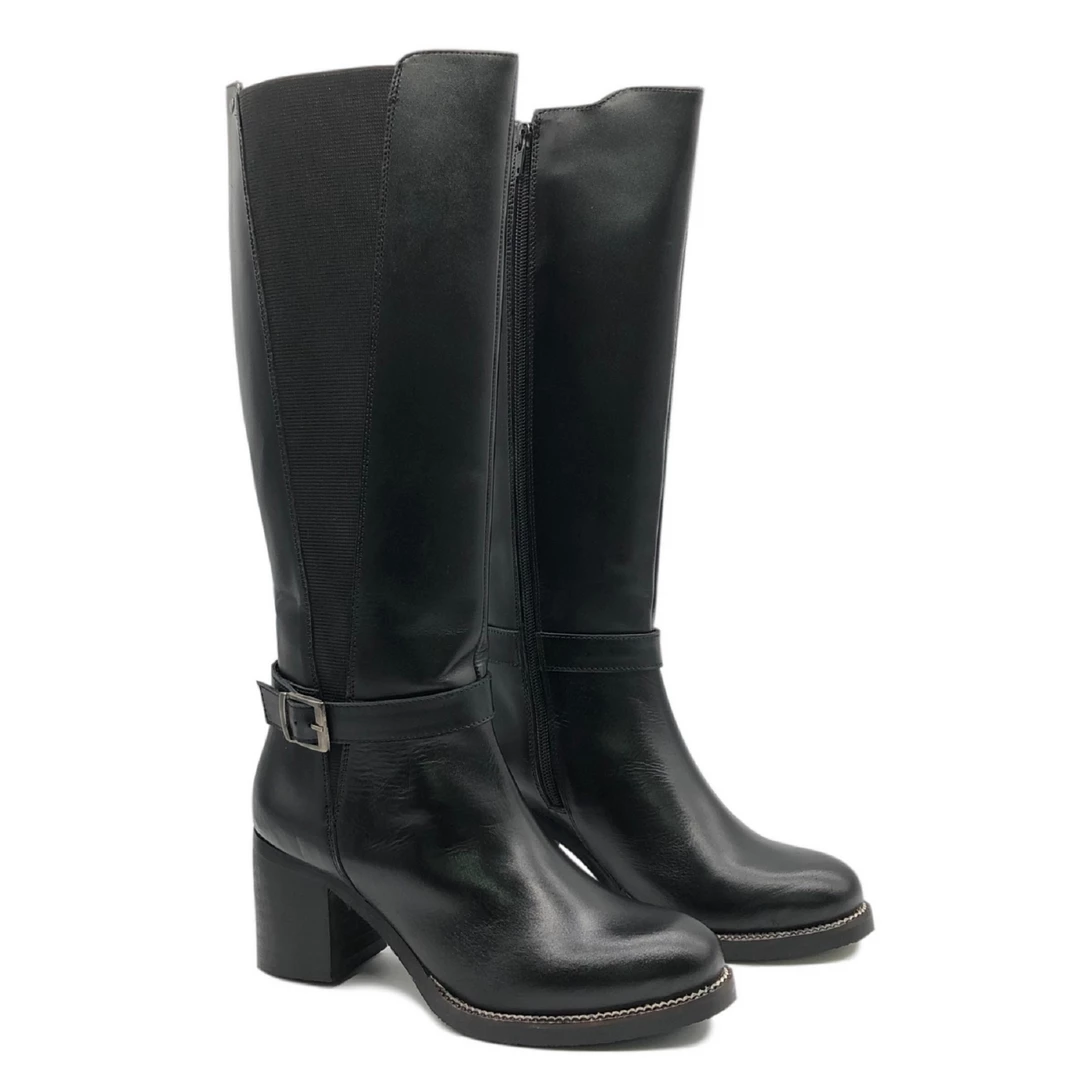 Stunning Women’s Block Heel Knee High Zip Buckle Elasticated Calf Boots