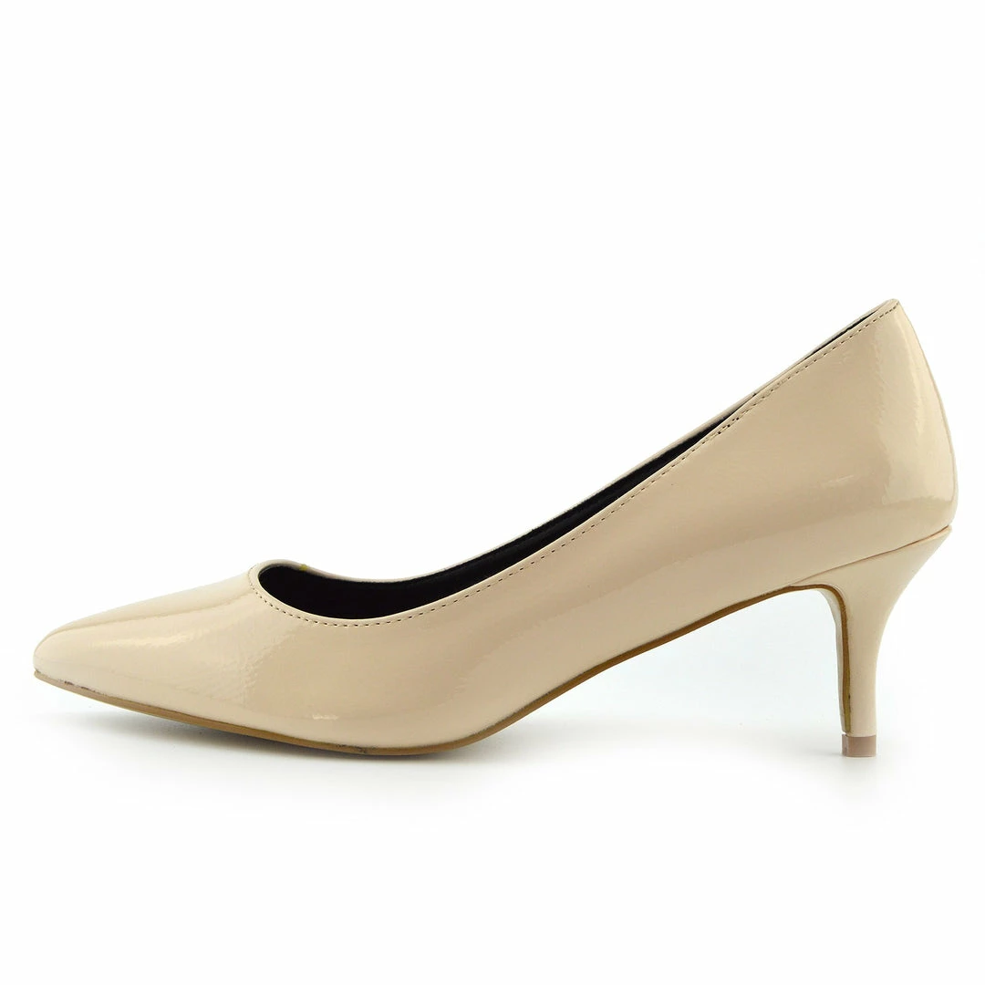 Ladies Kitten Heel Patent Court Shoes, Feminine Office Shoes