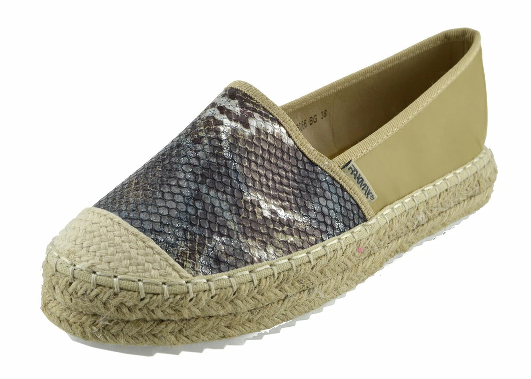 Your ideal companion for a summer holiday, these shoes mix hessian, a sleek snake print and simple canvas. Comfortable, they are great for walking yet have a more smart look than your average sneakers. Easily styled, pair these espadrilled under a wrap dress for a versatile outfit that can look effortlessly cool no matter where you end up.