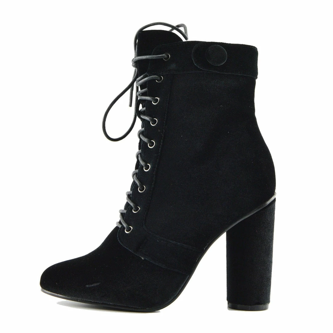 Inspired by combat boots, these suede lace up ankle boots are easy to wear and to match. Sitting mid-calf, these boots have a lace up across the front and a side zip ensuring they are easy to wear.