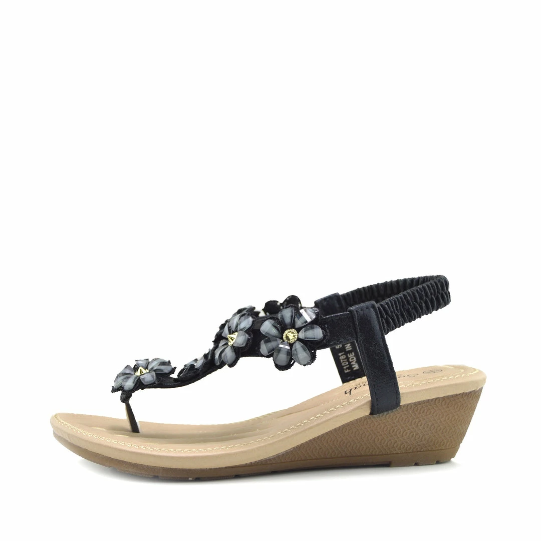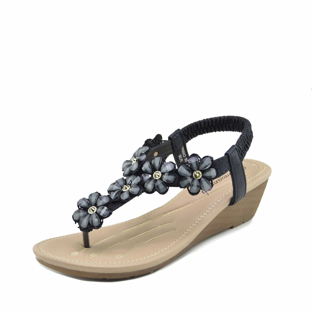 Women’s Floral Beaded Summer Comfort Wedge Sandals Party Sandals UK3-UK8