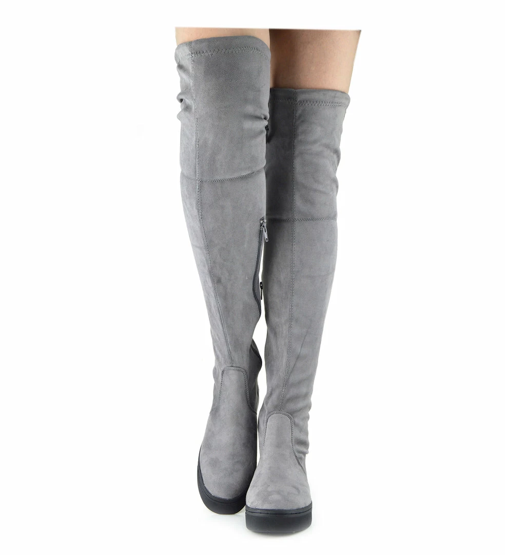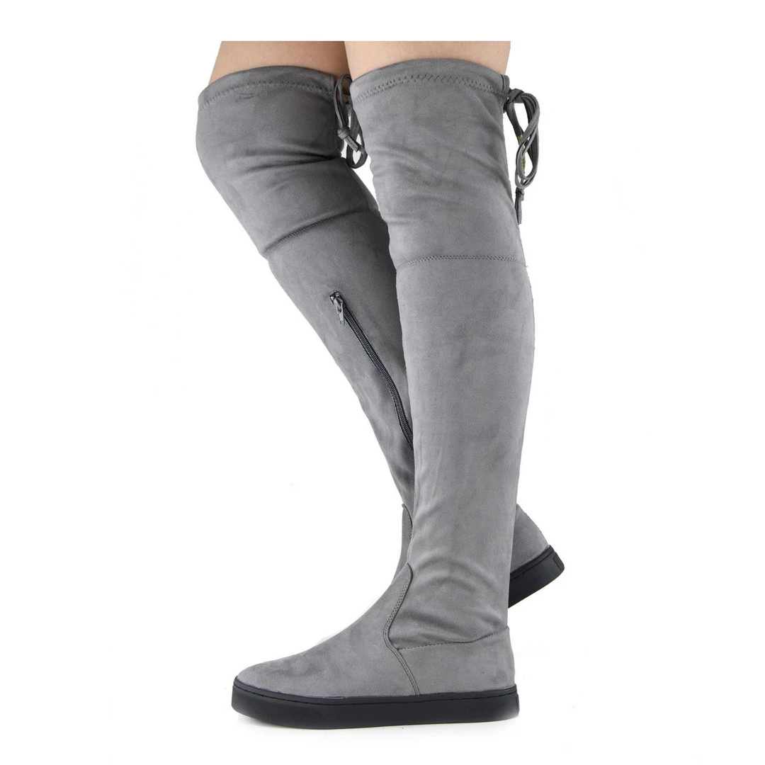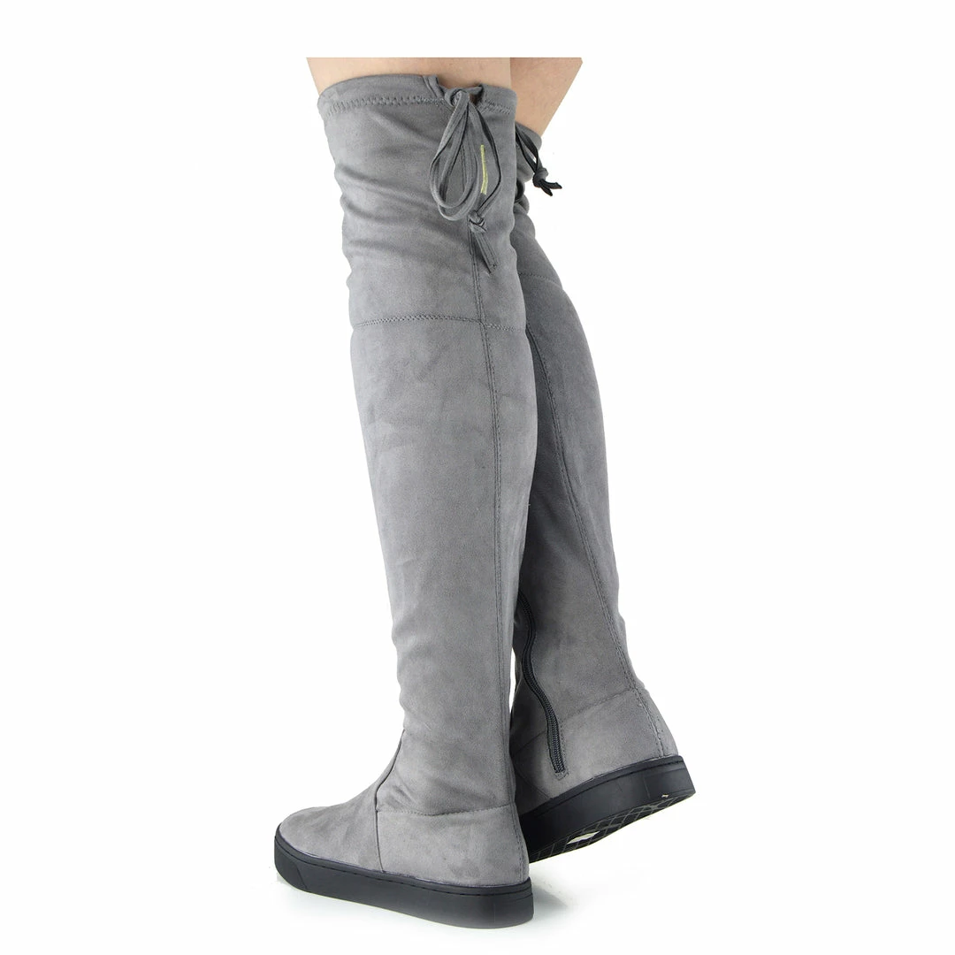 Love the over the knee boots trend but not a big fan of stilettos? Then these boots are made for you! Designed in the popular over the knee style with a tie at the back, these boots feature a flat sole.