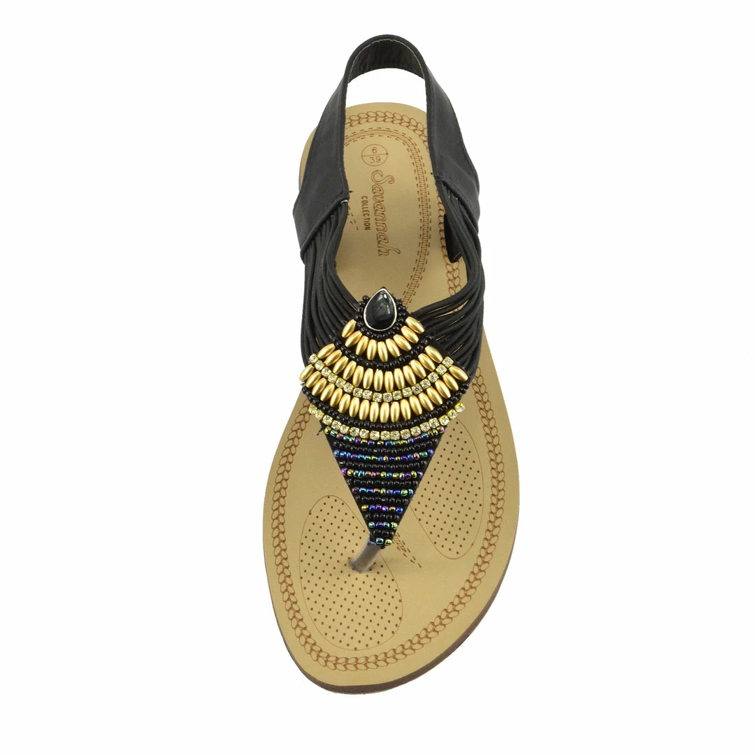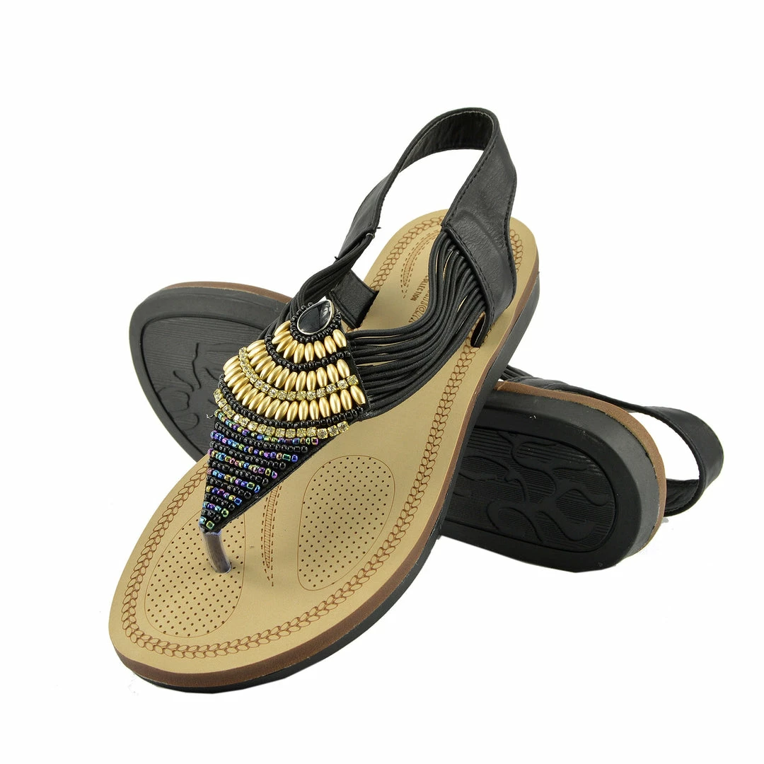 Women’s Slip on Beaded Boho Summer Flat Comfort Sandals UK3-UK8