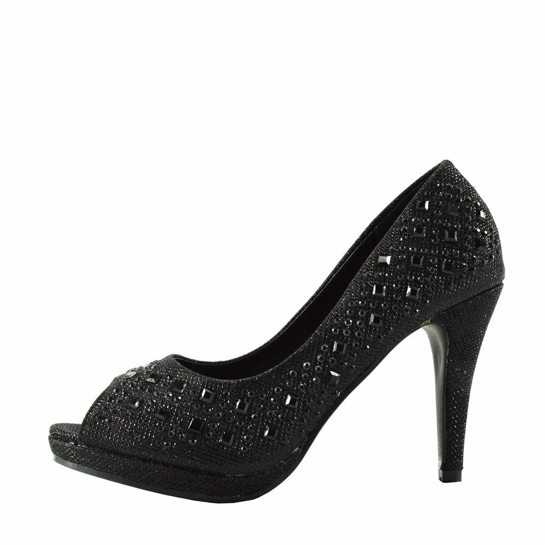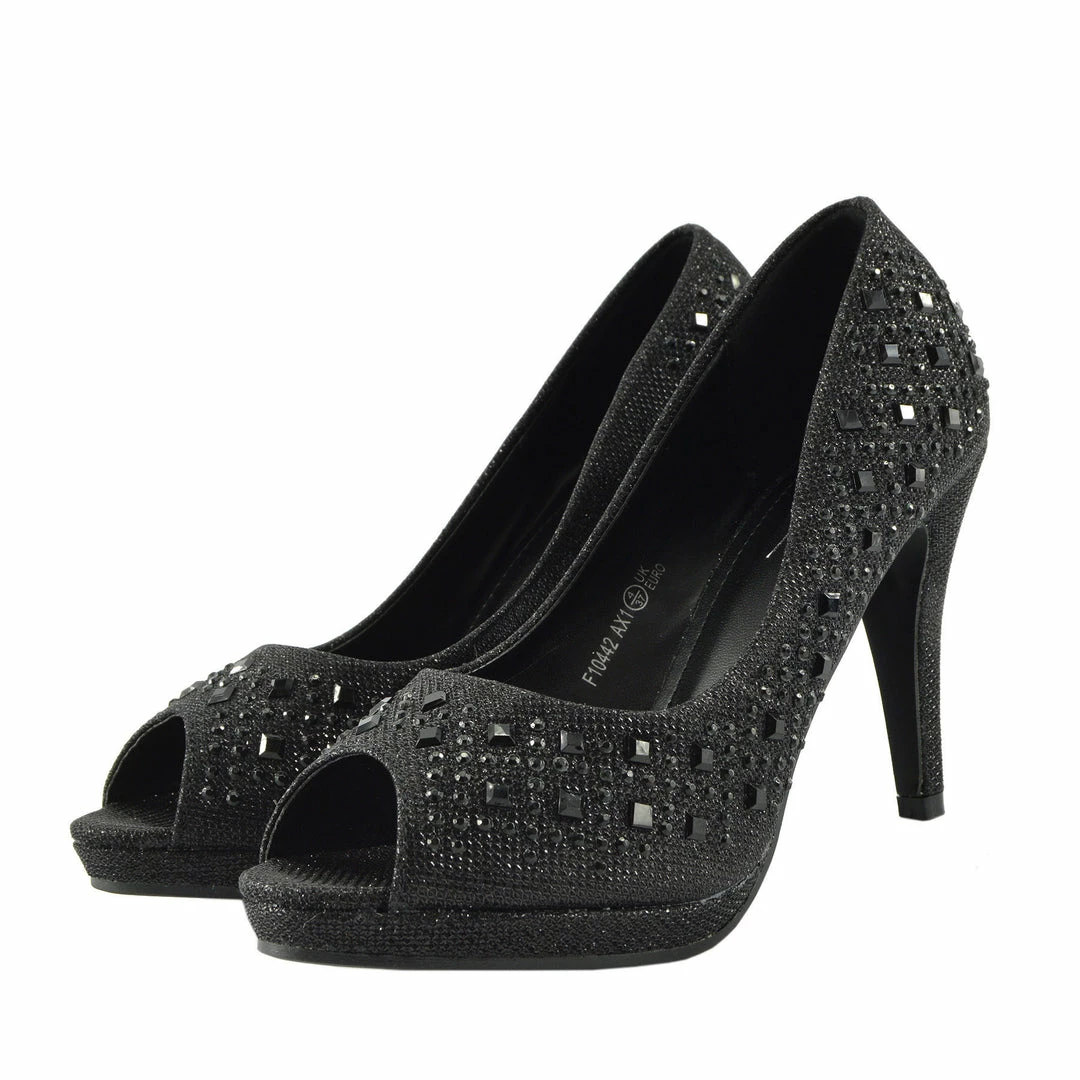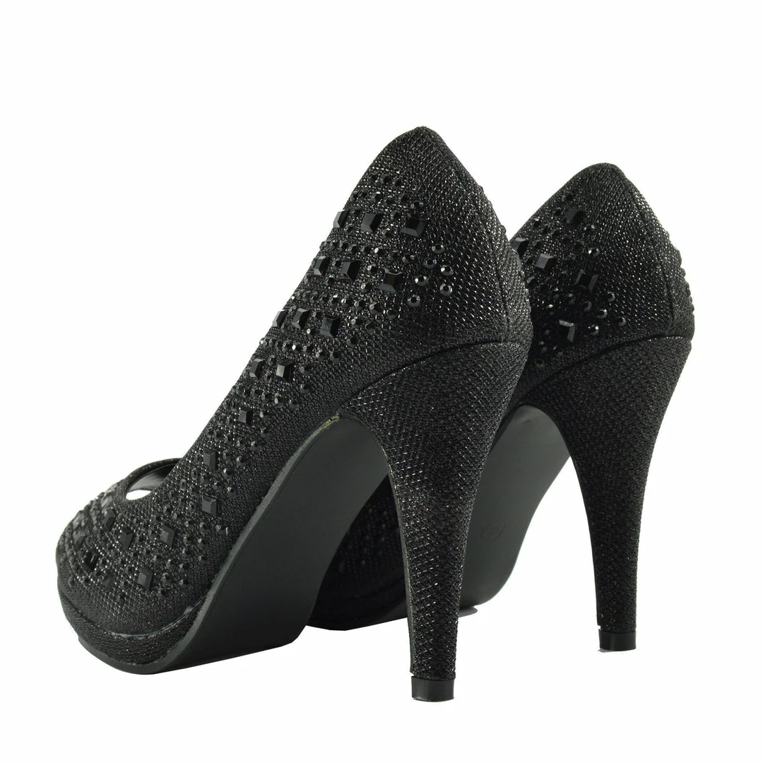 Be the first to review “Kickfootwear WOMENS Diamante Peep Toe Sparkle Shoes – Black” Cancel reply