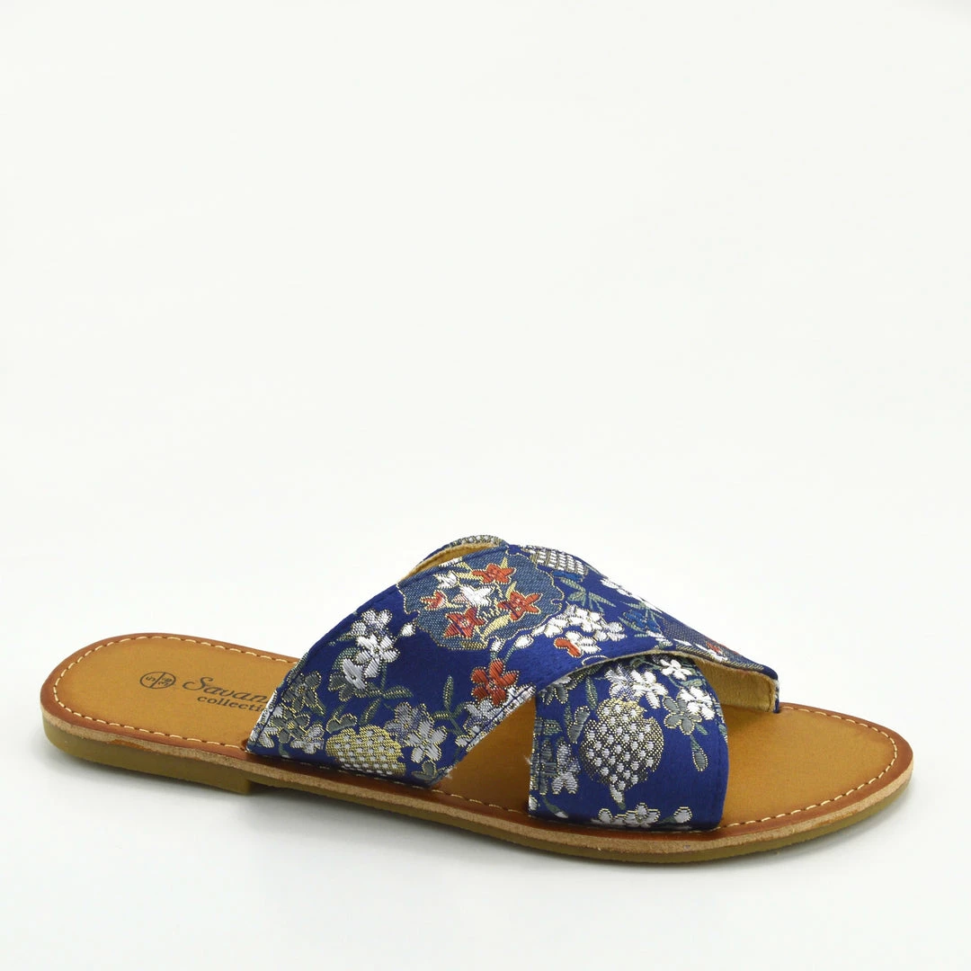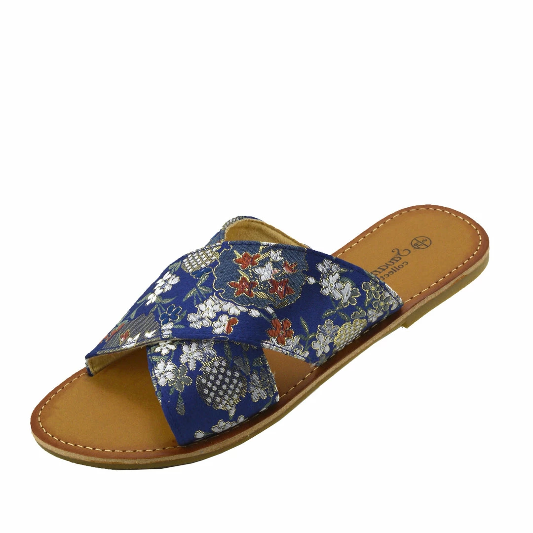 Ladies Sliders Sandals Flat Metallic Satin Vintage Oriental Strap Flats UK3-UK8