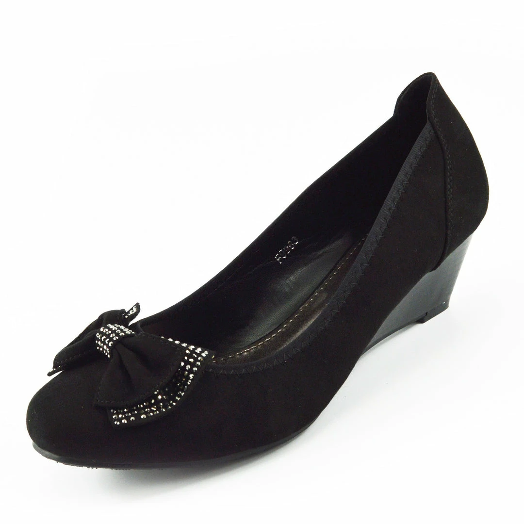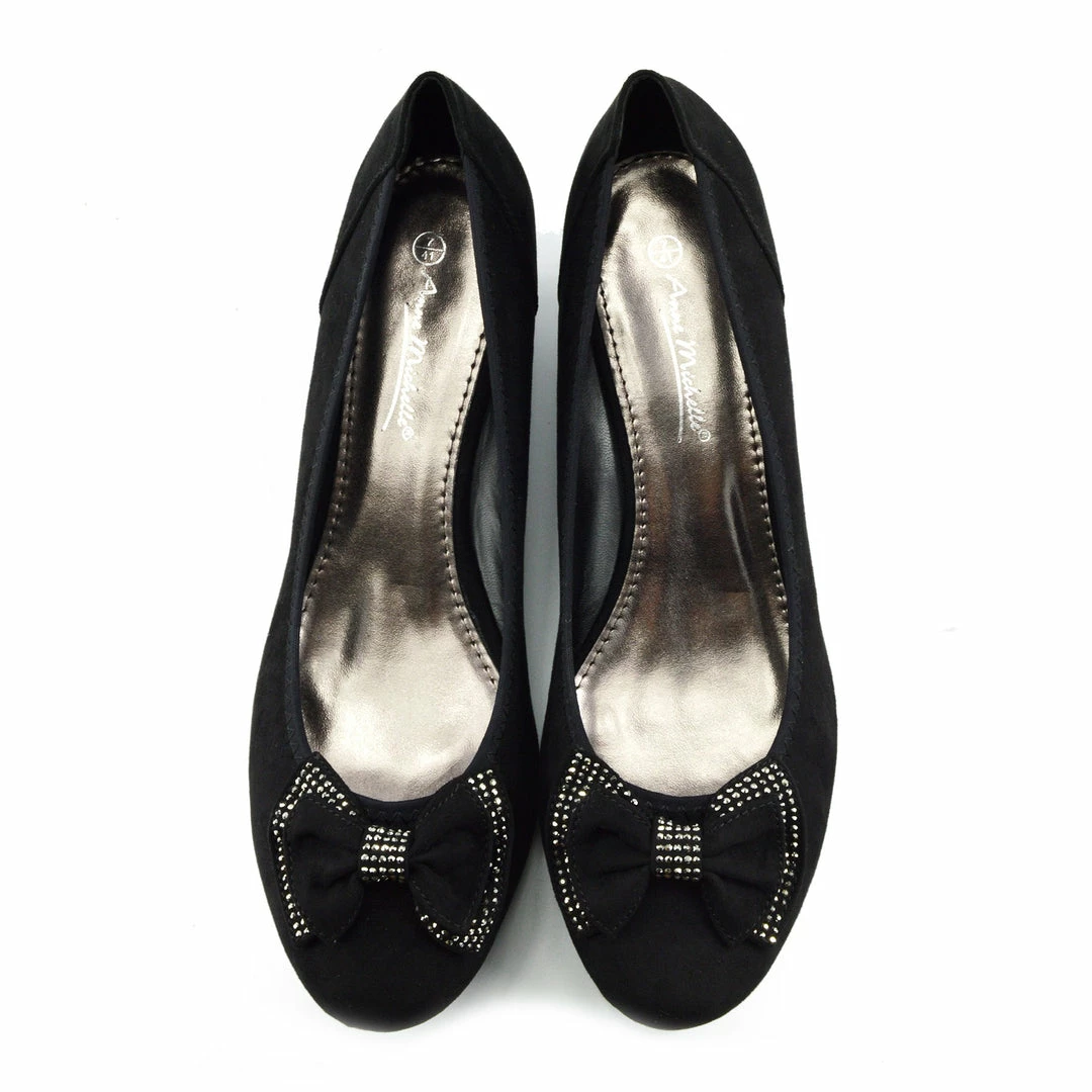 WOMENS LADIES FAUX SUEDE MID LOW HEEL WEDGE CASUAL WORK POSH COURT SHOES SIZE