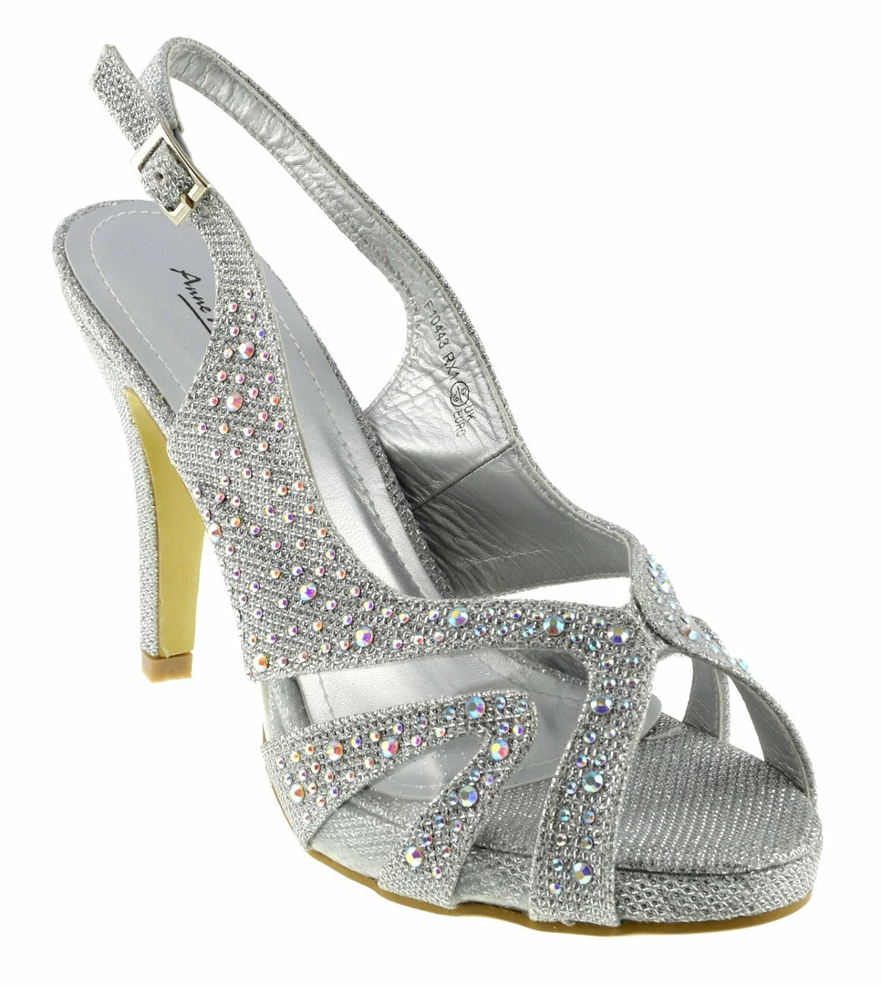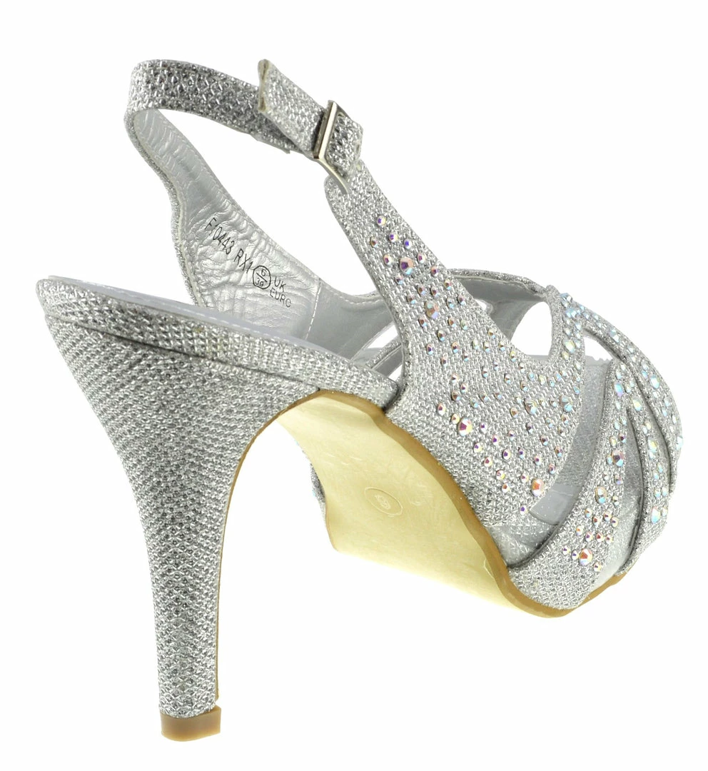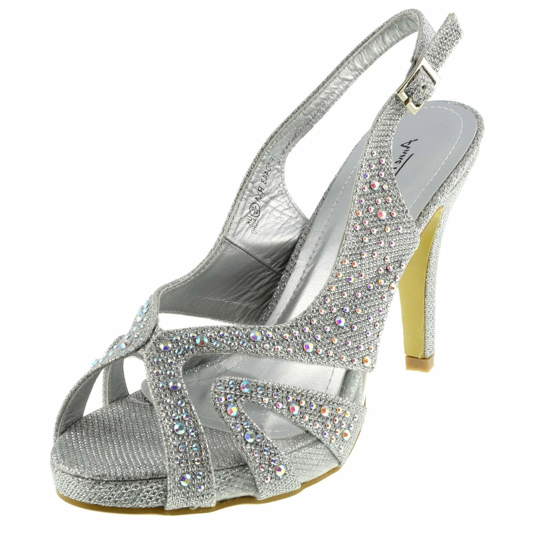 Women diamante heel party sandals wedding prom bridal strappy evening party shoes.