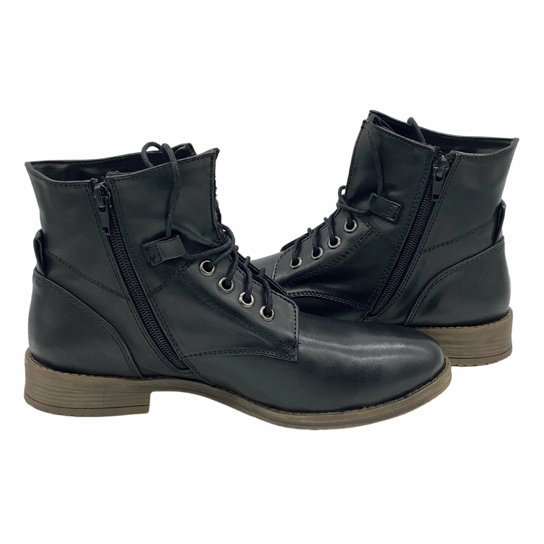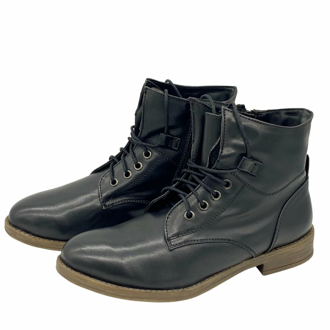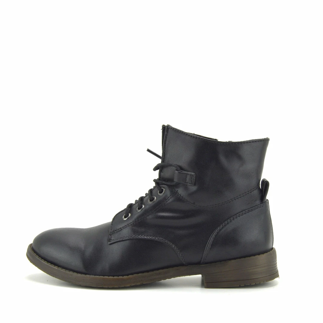 With a flat sole, these lace up ankle boots are a great casual go to boot for everyday wear. Great with jeans, shorts, or skirts and dresses, you’ll have unlimited ways to style these boots. The side zip adds to the detail across the shoes and makes them easy to pull on quickly. Available in a range of shades, you won’t need to find an excuse to wear these combat boots.