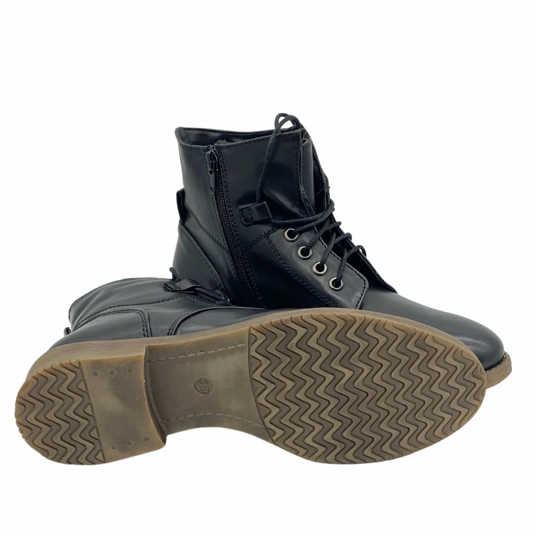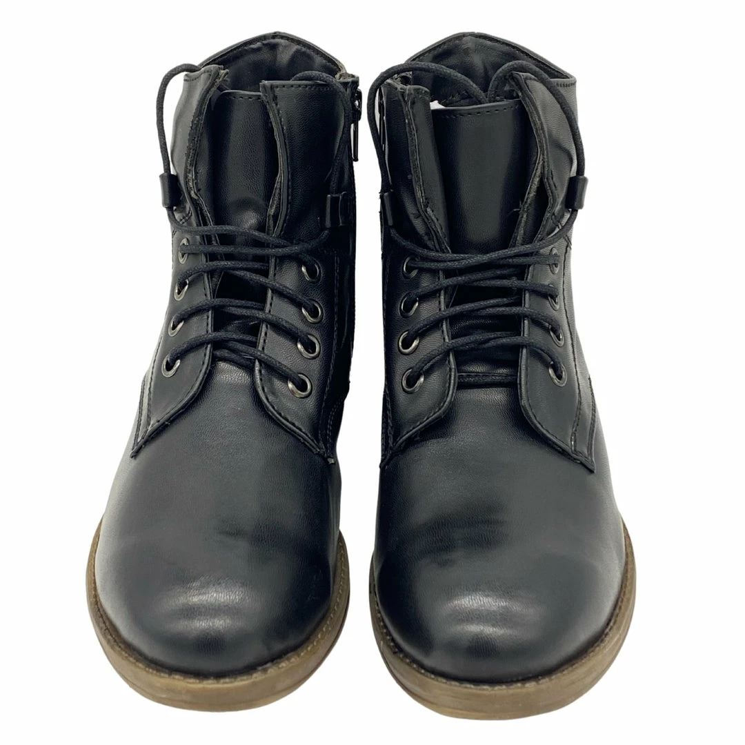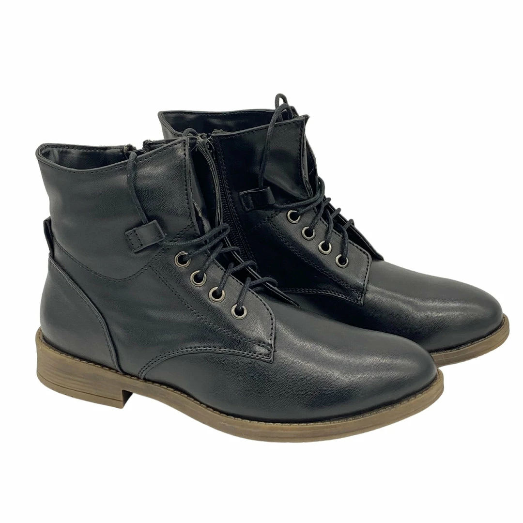 With a flat sole, these lace up ankle boots are a great casual go to boot for everyday wear. Great with jeans, shorts, or skirts and dresses, you’ll have unlimited ways to style these boots. The side zip adds to the detail across the shoes and makes them easy to pull on quickly. Available in a range of shades, you won’t need to find an excuse to wear these combat boots.