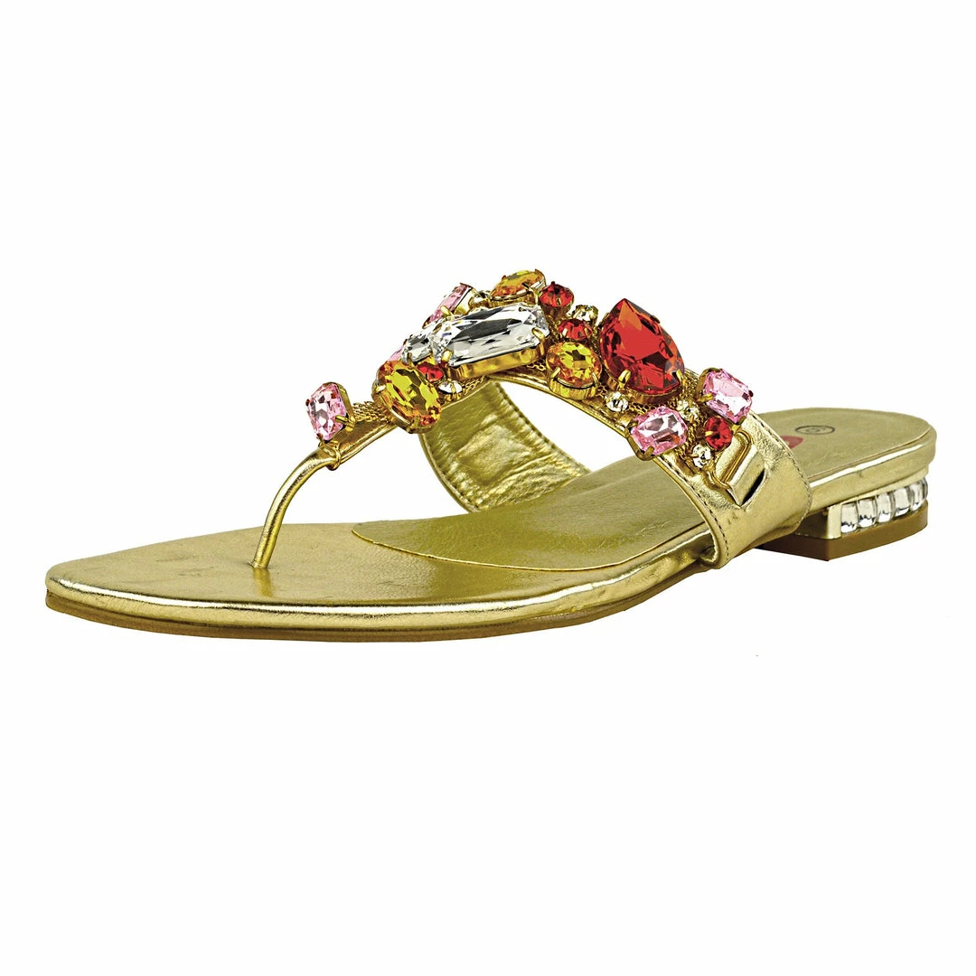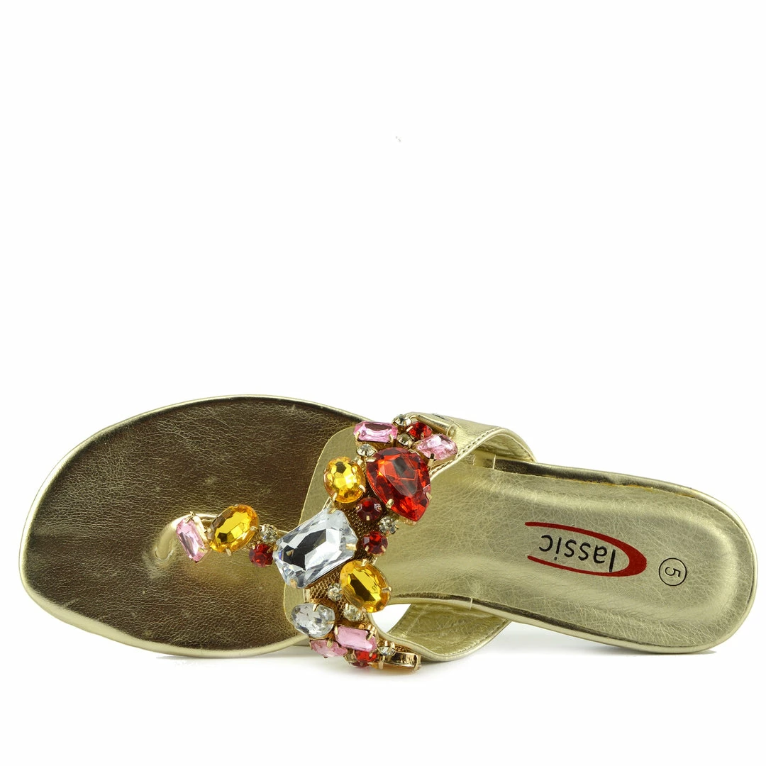 Add a feature to any plain maxi dress, wide leg trousers or team with a fab sari. Flat and comfortable the chunky eye catching gemstones are bold whilst the stones in the heel add an element of glitz from all angles.
