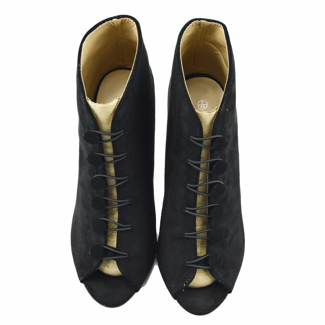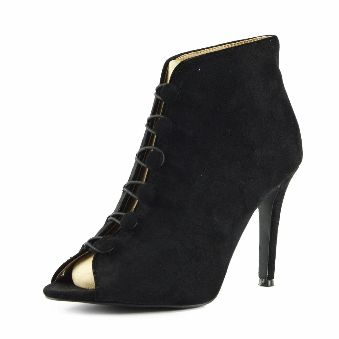 Be the first to review “Kickfootwear WOMENS Sofia Peep Toe Button Stiletto Heel Ankle Booties – Black” Cancel reply