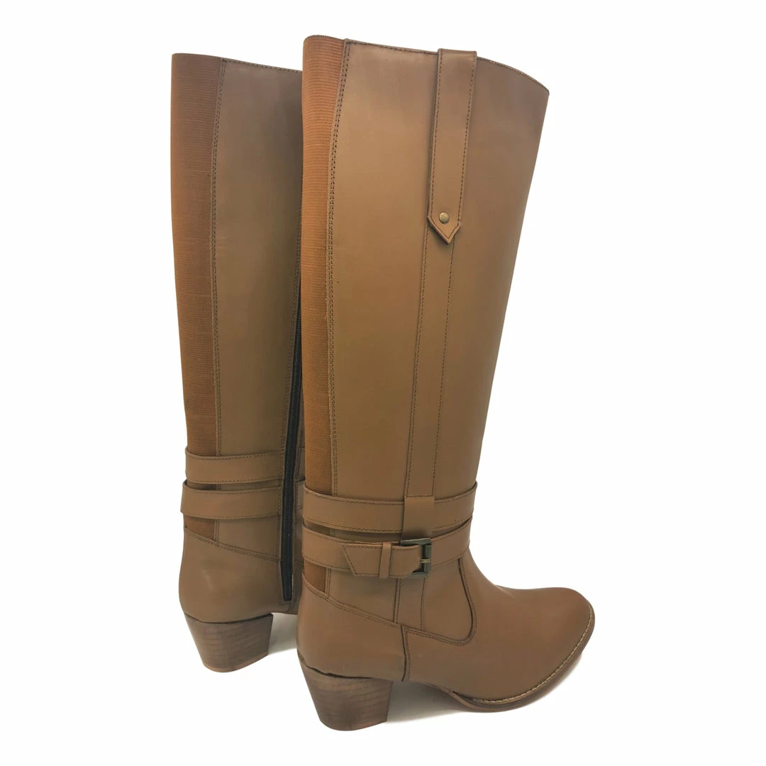 Stunning Women’s Block Heel Knee High Zip Buckle Elasticated Calf Boots