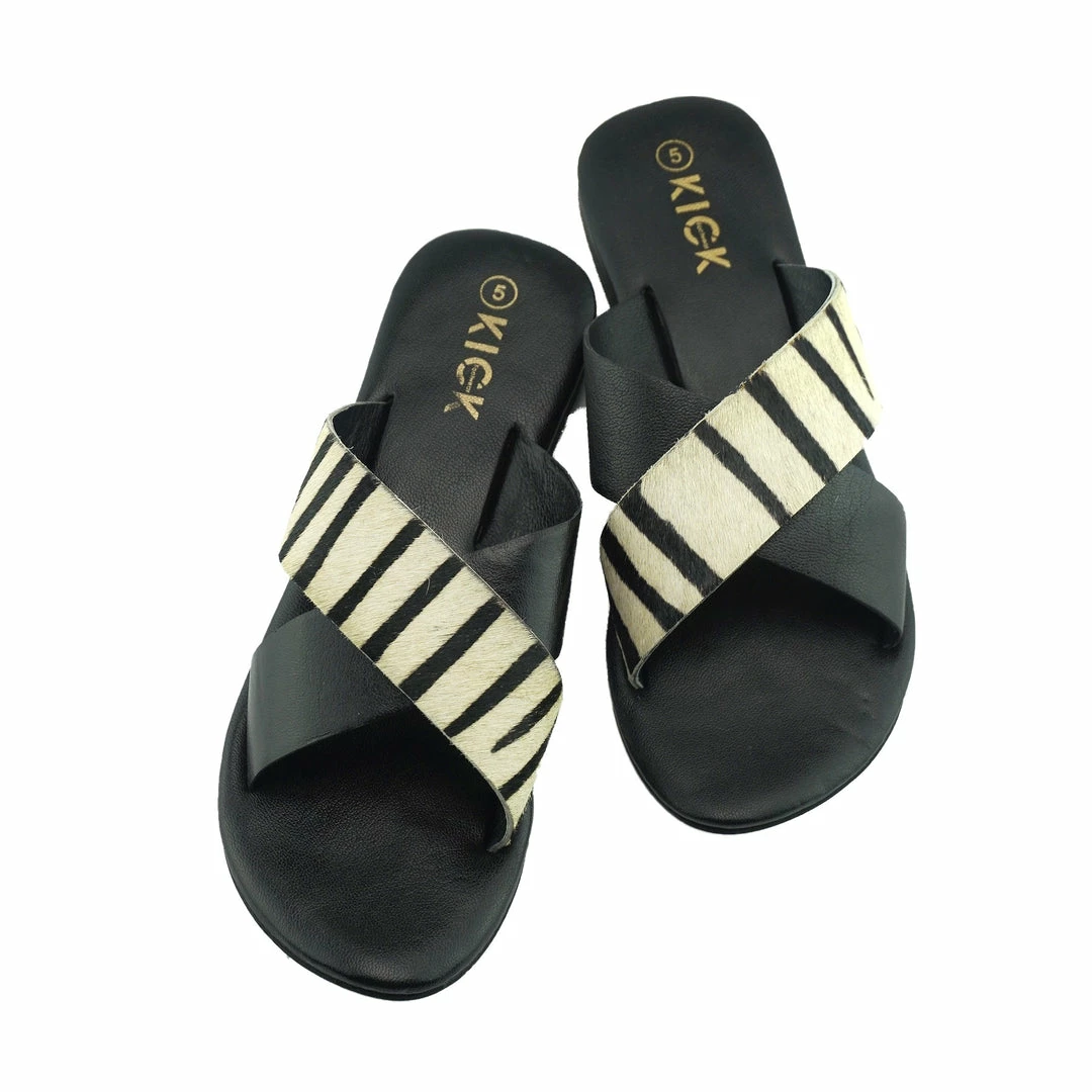 Be the first to review “Kickfootwear Zadie Leather Comfort Sole Cross Sliders- Zebra” Cancel reply